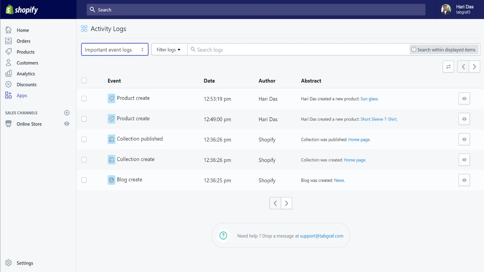 This app records your shop's activities related to cart, checkout, order, refund, fulfilment, inventory, product, customer and many more. Basically the logs have been categorized into 3 types.