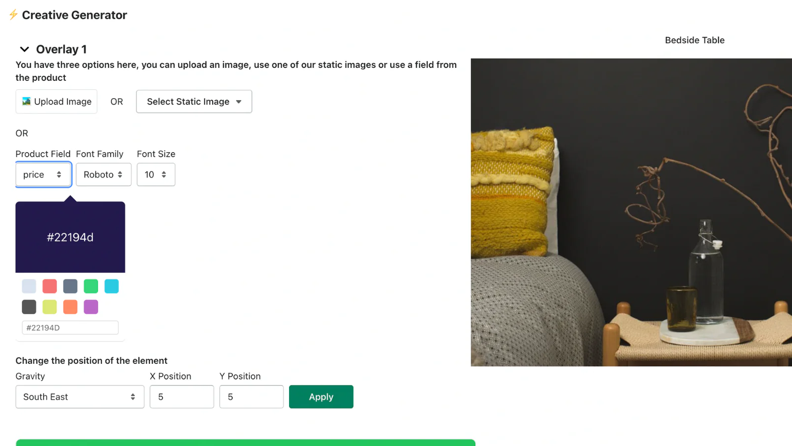 Product Fields In The Image : Dynamically place product fields such as price on your products image so you can quickly show the field on your creatives