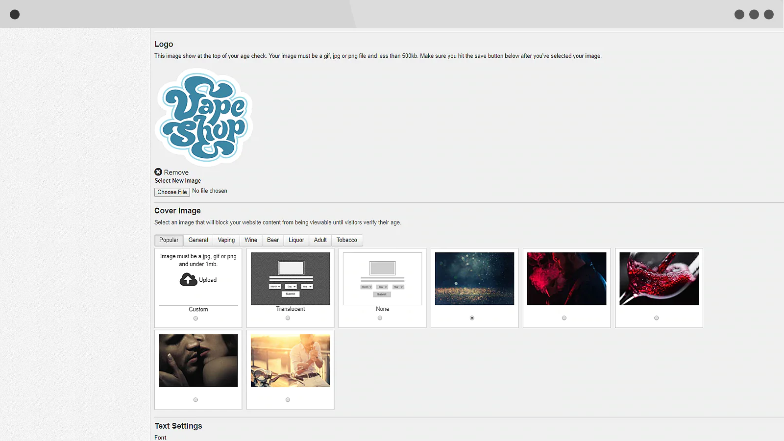 Display a background image to block out your website from being viewable until visitors verify their age. Upload your own image or select from the largest gallery of age verification stock images on Shopify.