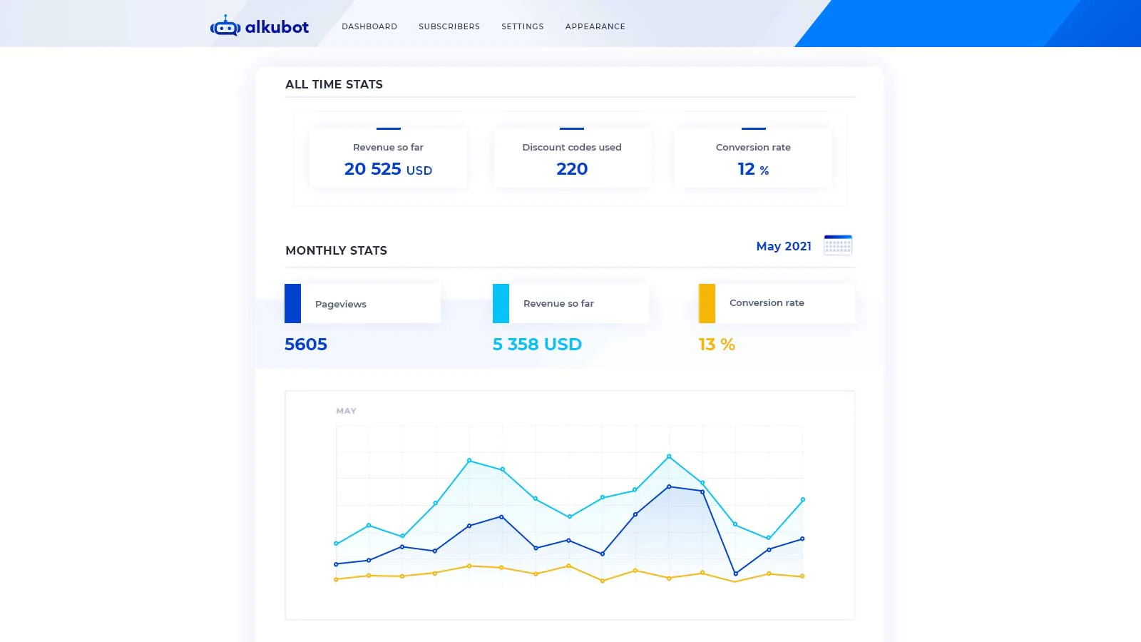 Instead of using outdated and frustrating pop-ups, increase conversion rate in a gamified and interactive way. By using Akubot, visitors have to work for their coupon codes, this way, they value it more. Instead of fixed discounts, Alkubot helps the seller and the buyer to find the ideal automated discount rate.