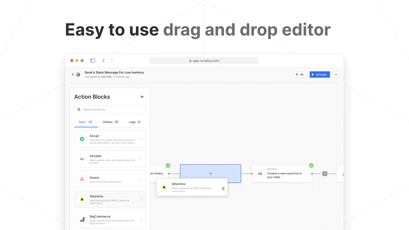 Save time : Spend more time growing your business. Let Alloy automate tedious tasks so you can focus on what matters.