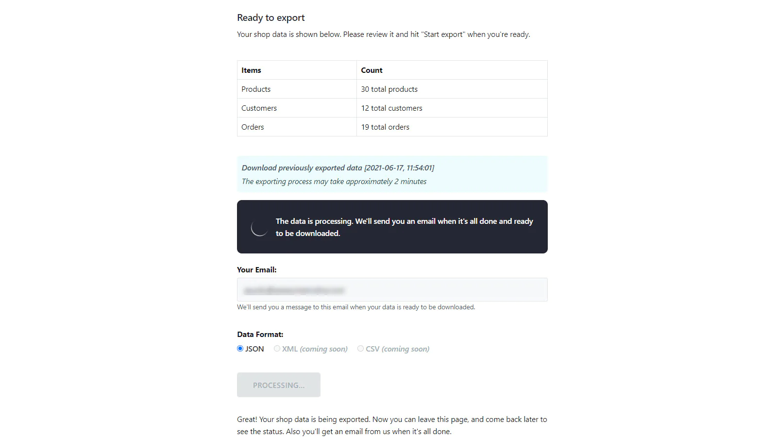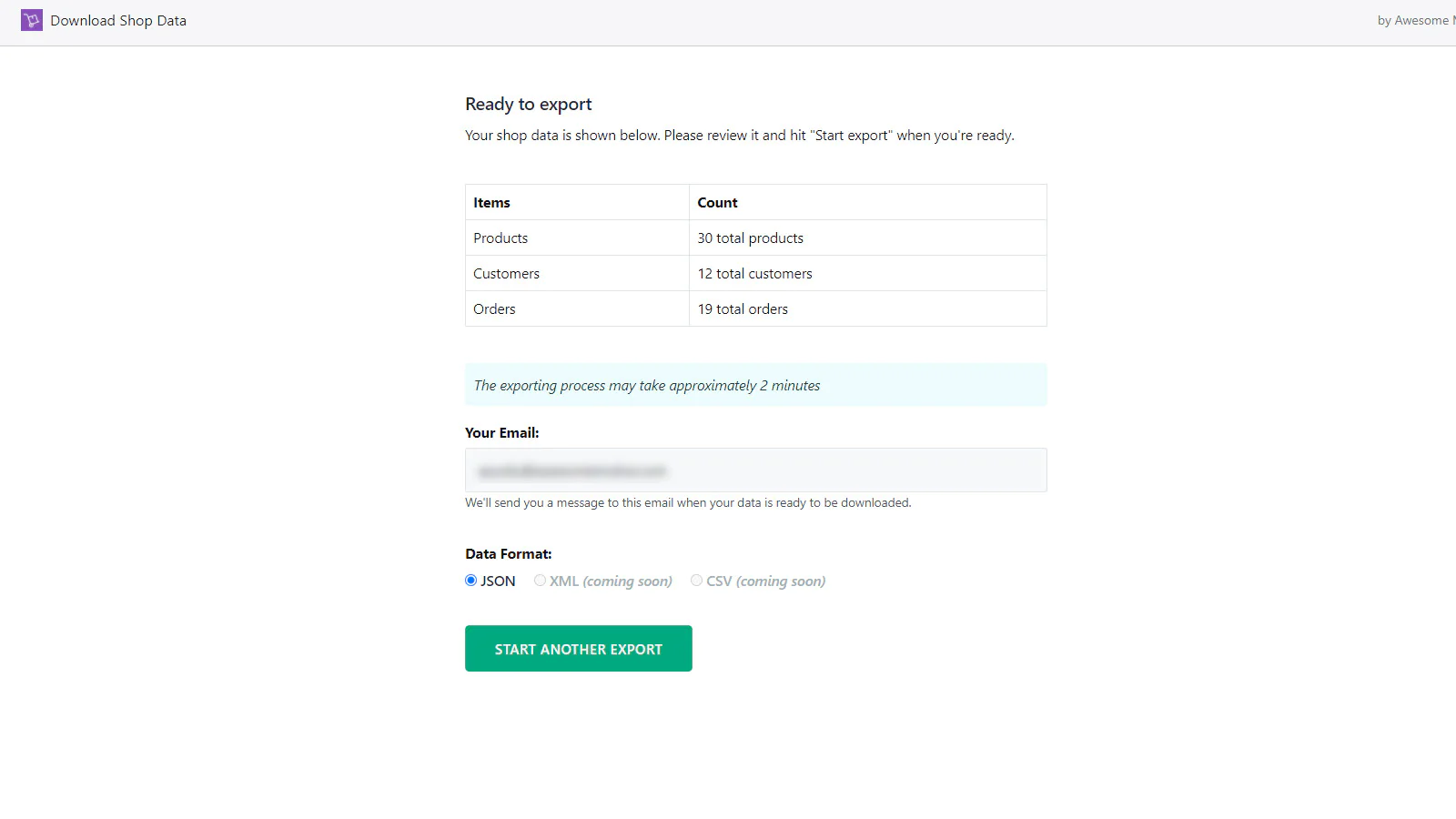 Looking to download your shop data for offline usage? This app will help you to do this in just a few clicks.