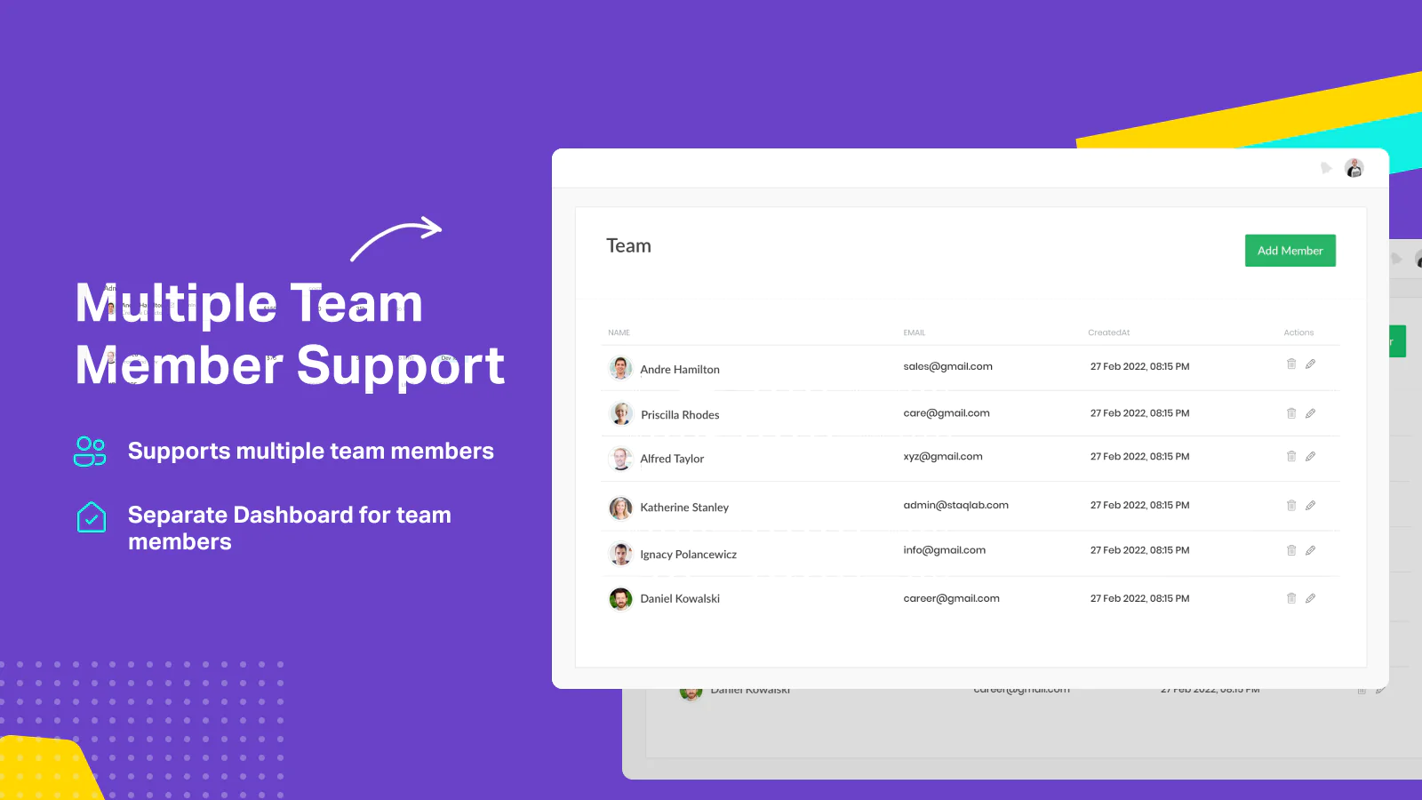Separate dashboard for your team members to manage their appointments. No need to add them as staff members on the Shopify account.
