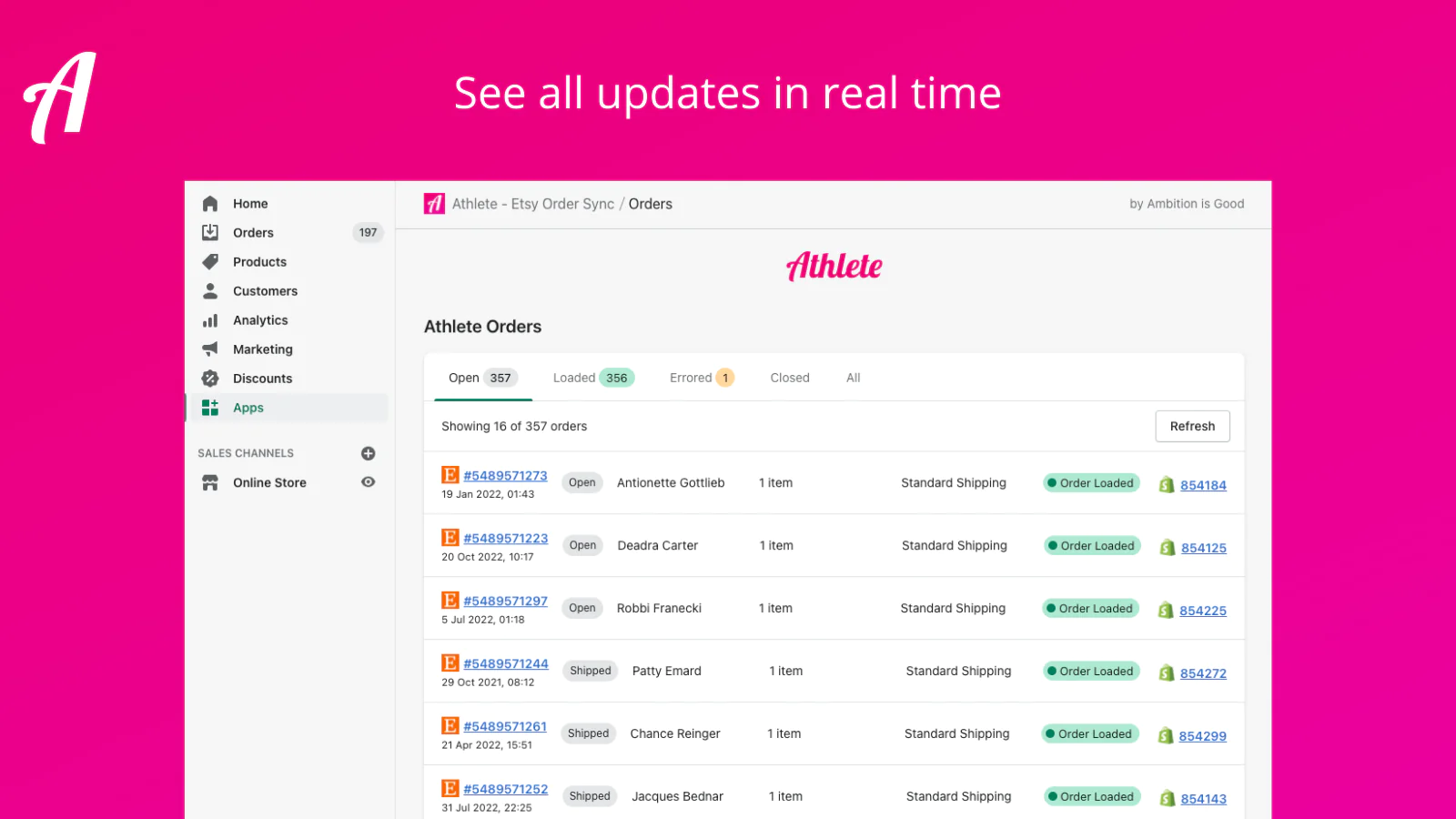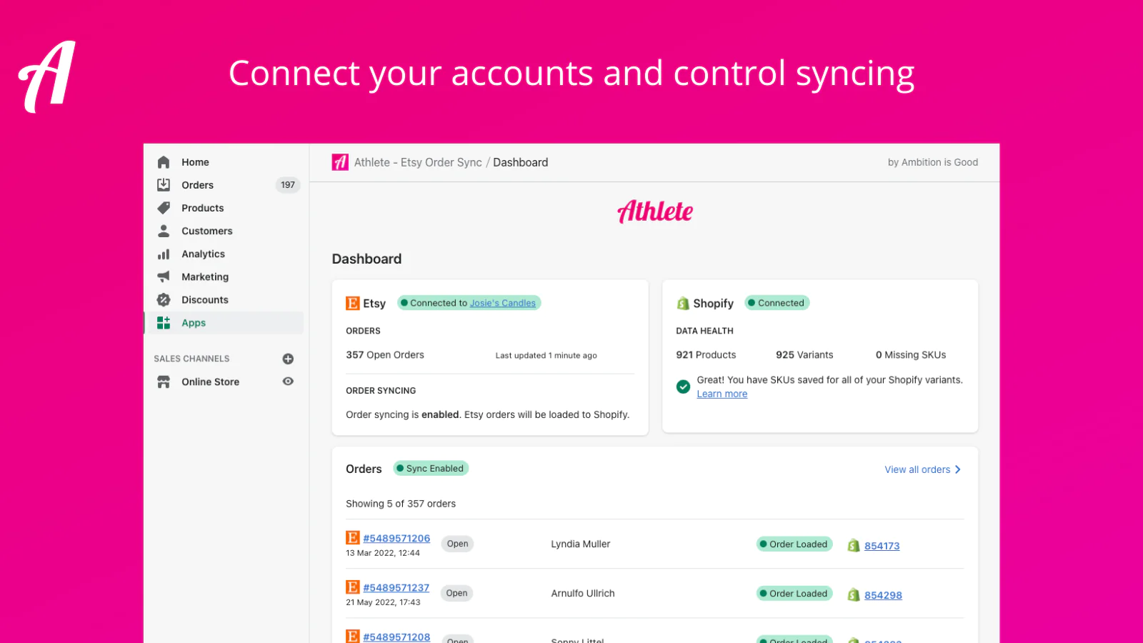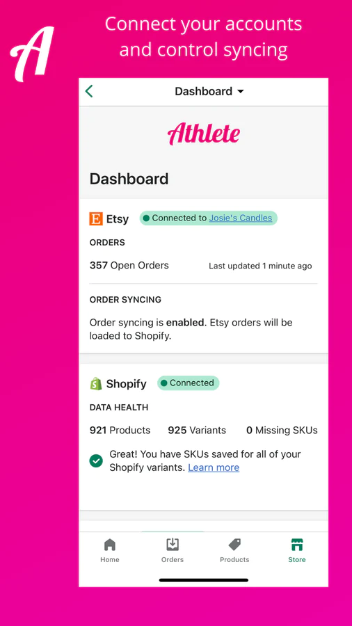 Scalable. : Athlete has synced thousands of Etsy orders, customers and shipments. As your business grows, Athlete can keep up.