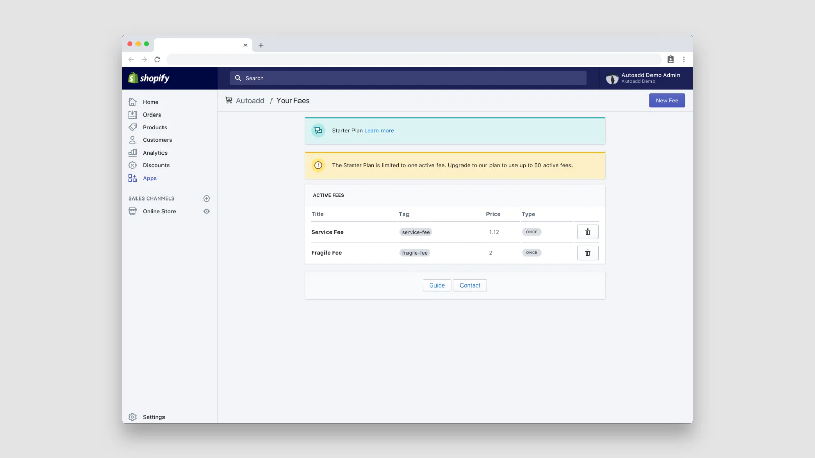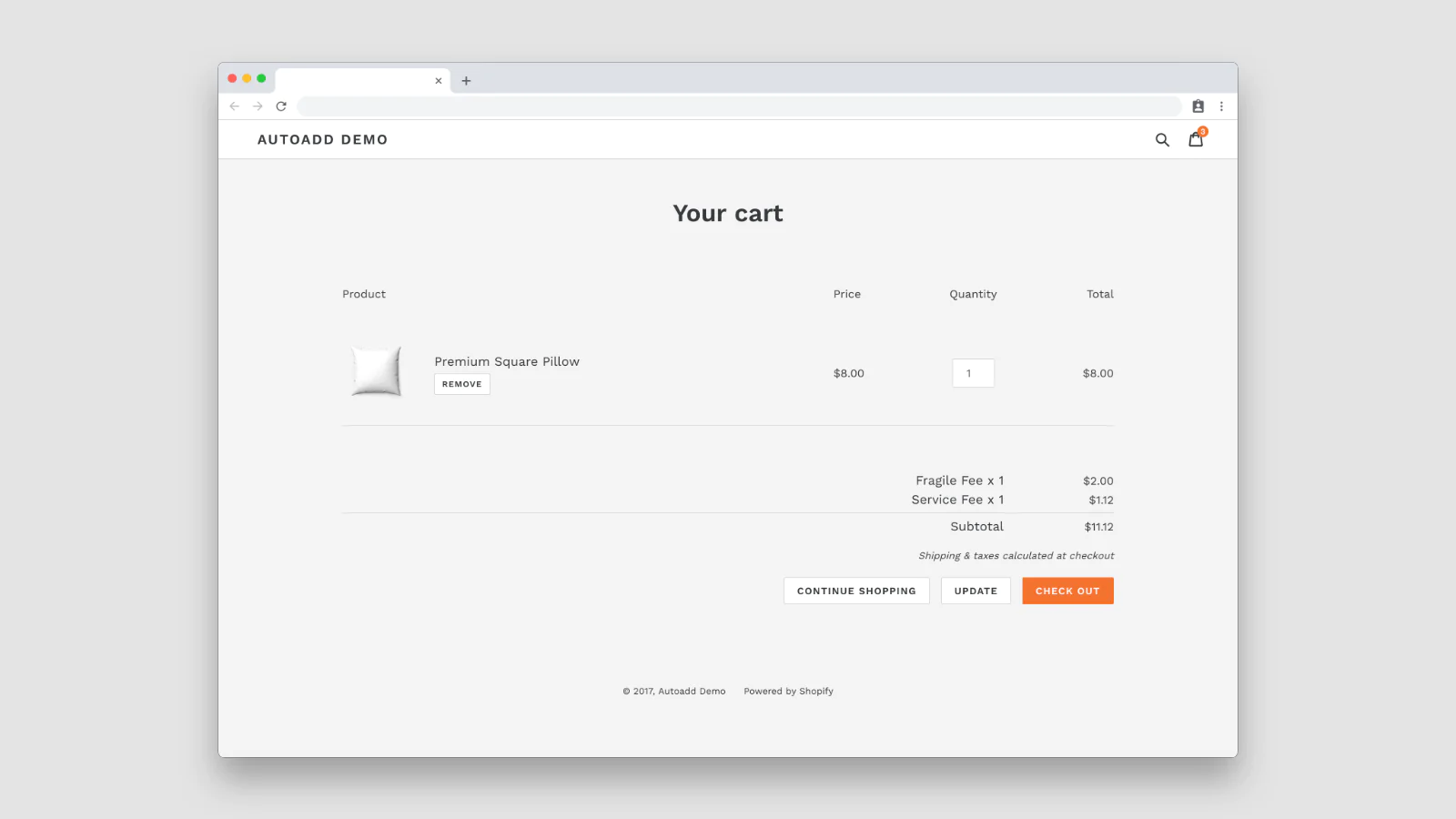 Autoadd is a simple app that can be used to automatically add fees to your customer’s purchase. It’s useful for Shopify store owners that need to create separate line items for different costs.