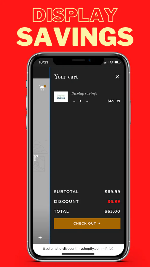 Display applied discounts and savings inside your theme, for example on your cart page.