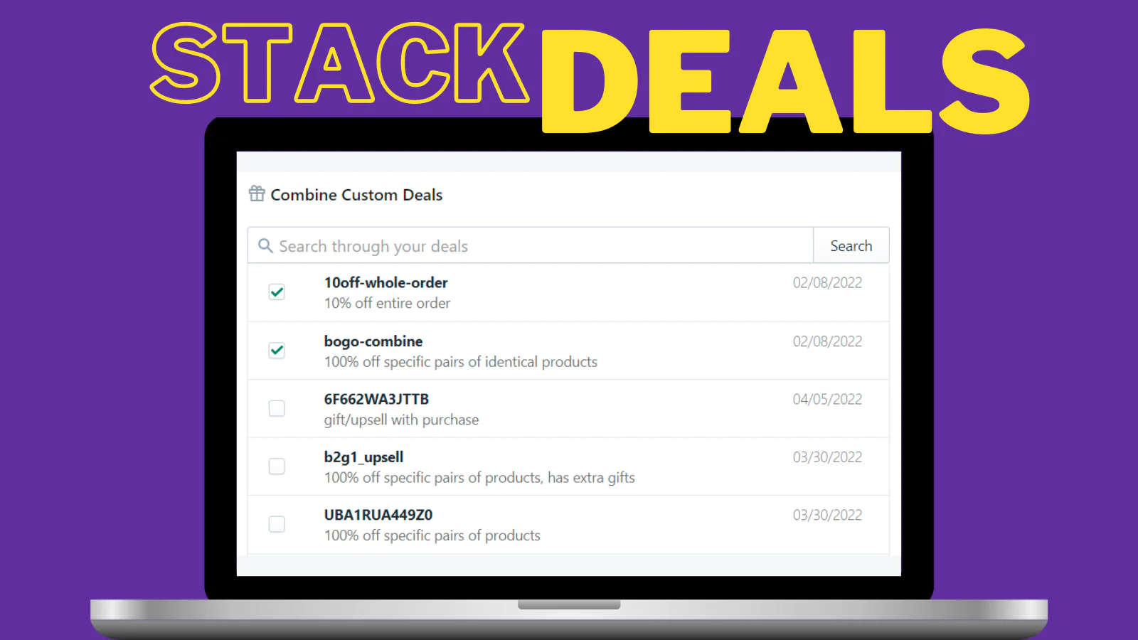 Custom Deals are an alternative to Shopify discounts. They allow flexible and stacked promotions.