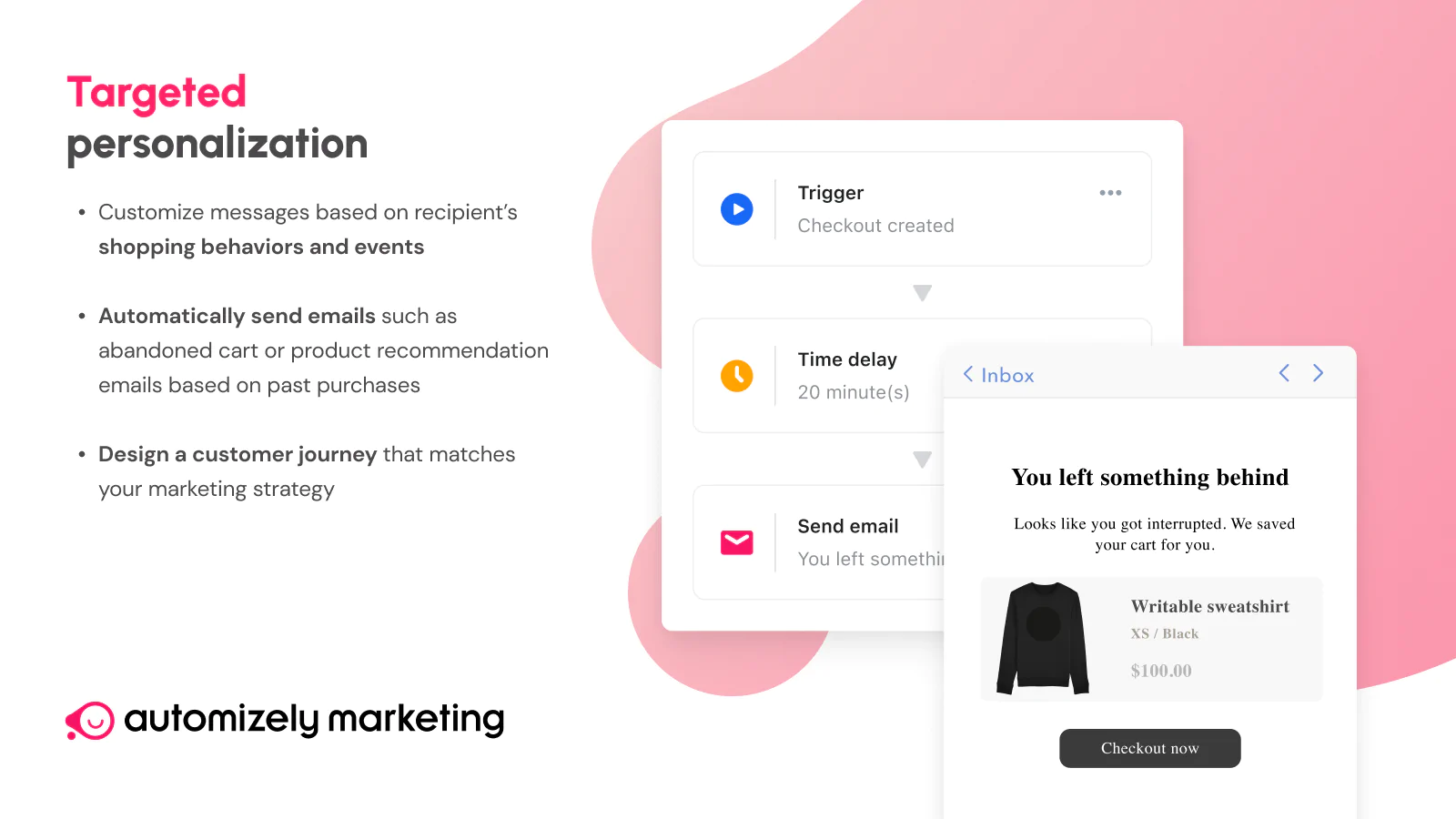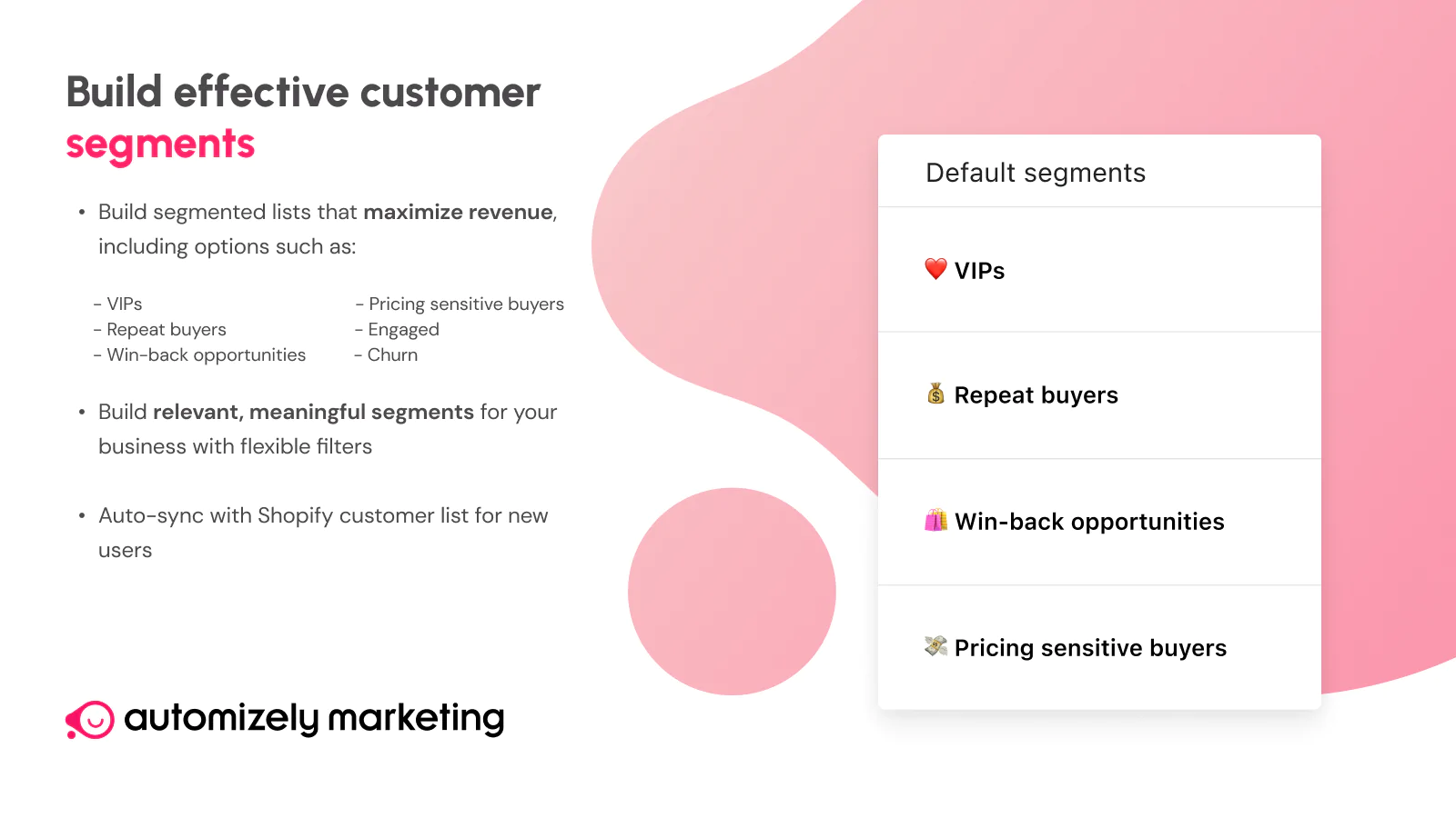 Automated flows that scale : Segment audience and build personalized, automated flows for emails and SMSs based on customers’ shopping behavior to maximize engagement.