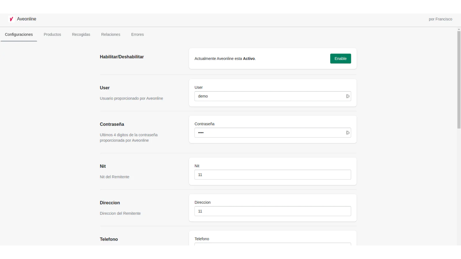 Es una aplicación que le permite a shopify usar el servicio de envíos Aveonline en Colombia, esta permite configurar producto en peso, dimensiones y valor de envió, para cotizar los envió, proporcionarle una interfaz para ver las Guías, Rótulos, Recogidas y Relación de Envíos