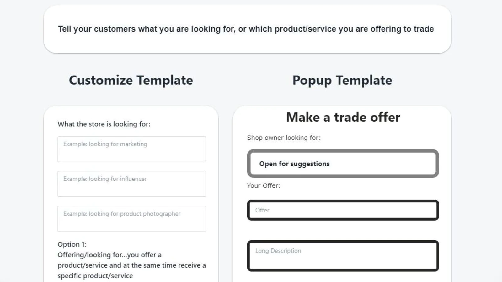 Business owners as well as customers have both the same need, saving cash! How can you get your business needs? How can the online customer get your product? The answer is trading/ bartering. Both can get creative and interact with each other.The online customer will come to your site and see they have a trade option button on the product page, and they will communicate that with their friends so you get more customers. They will send you a trade offer you can agree on, or make a counter offer but even if you don't agree on a trade, the online customer will get to know your product/service and might eventually buy it! Remember if you agree on a trade, both parties are happy and the happier they are the more they will talk about your online store.