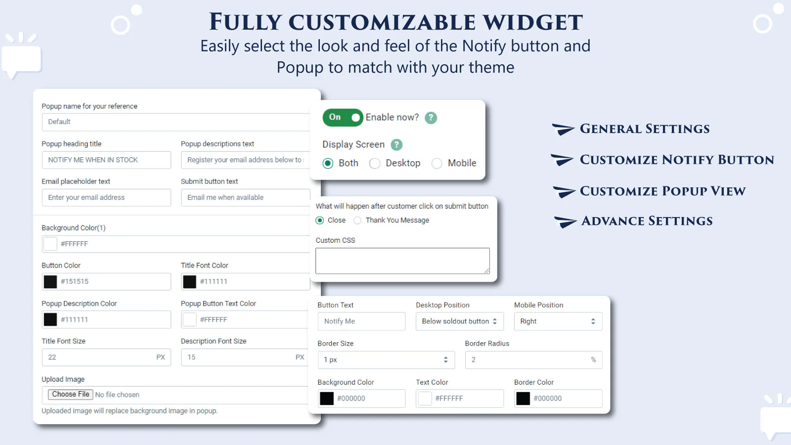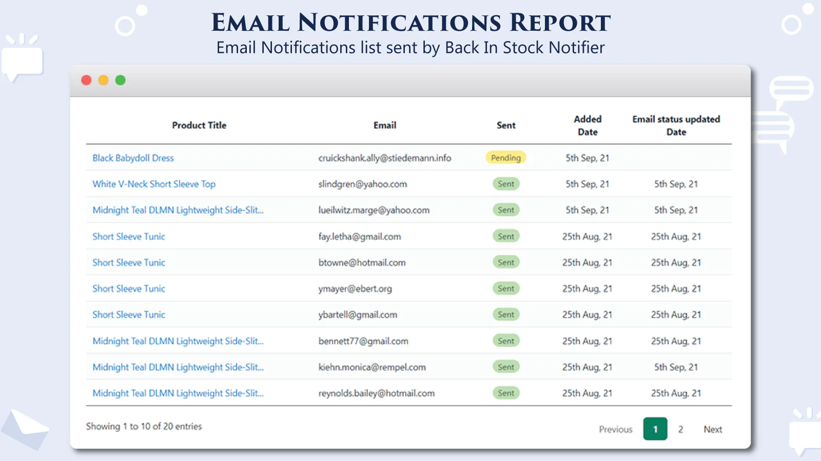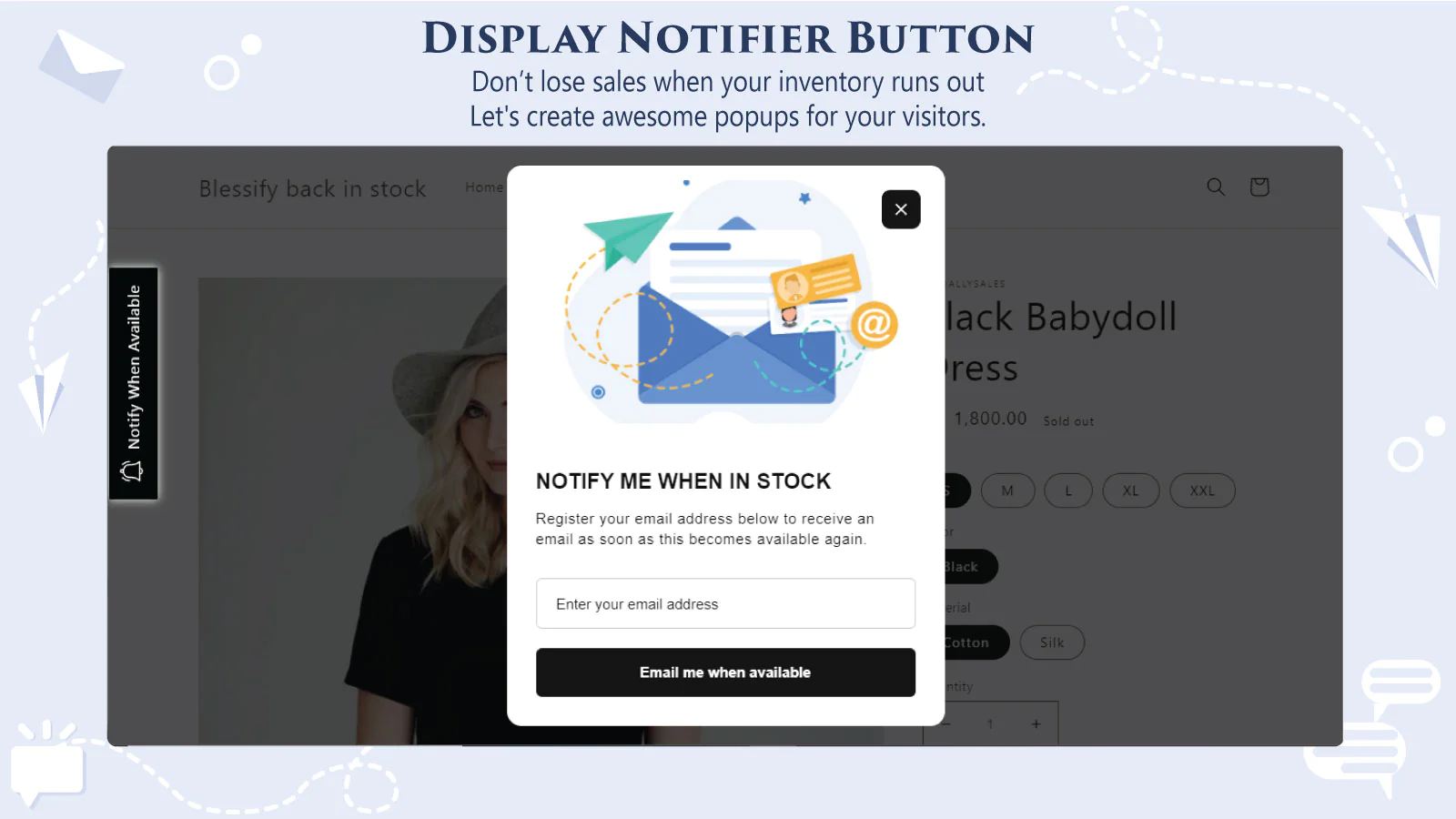 Out of Stock Alerts : Notify your customers when restock your sold out products.