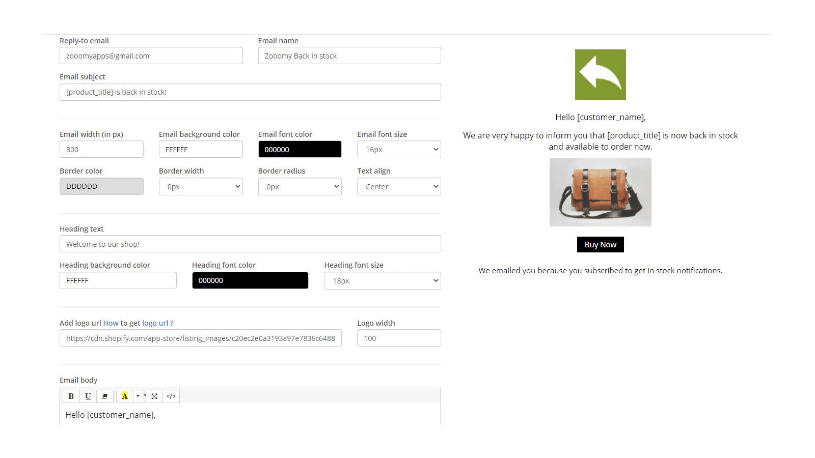Once the product quantity is updated, you can either send an email manually or enable automatic email setting from app's back end and send emails to your customer with the link to the back in stock product so they can be directed back to the product they want!