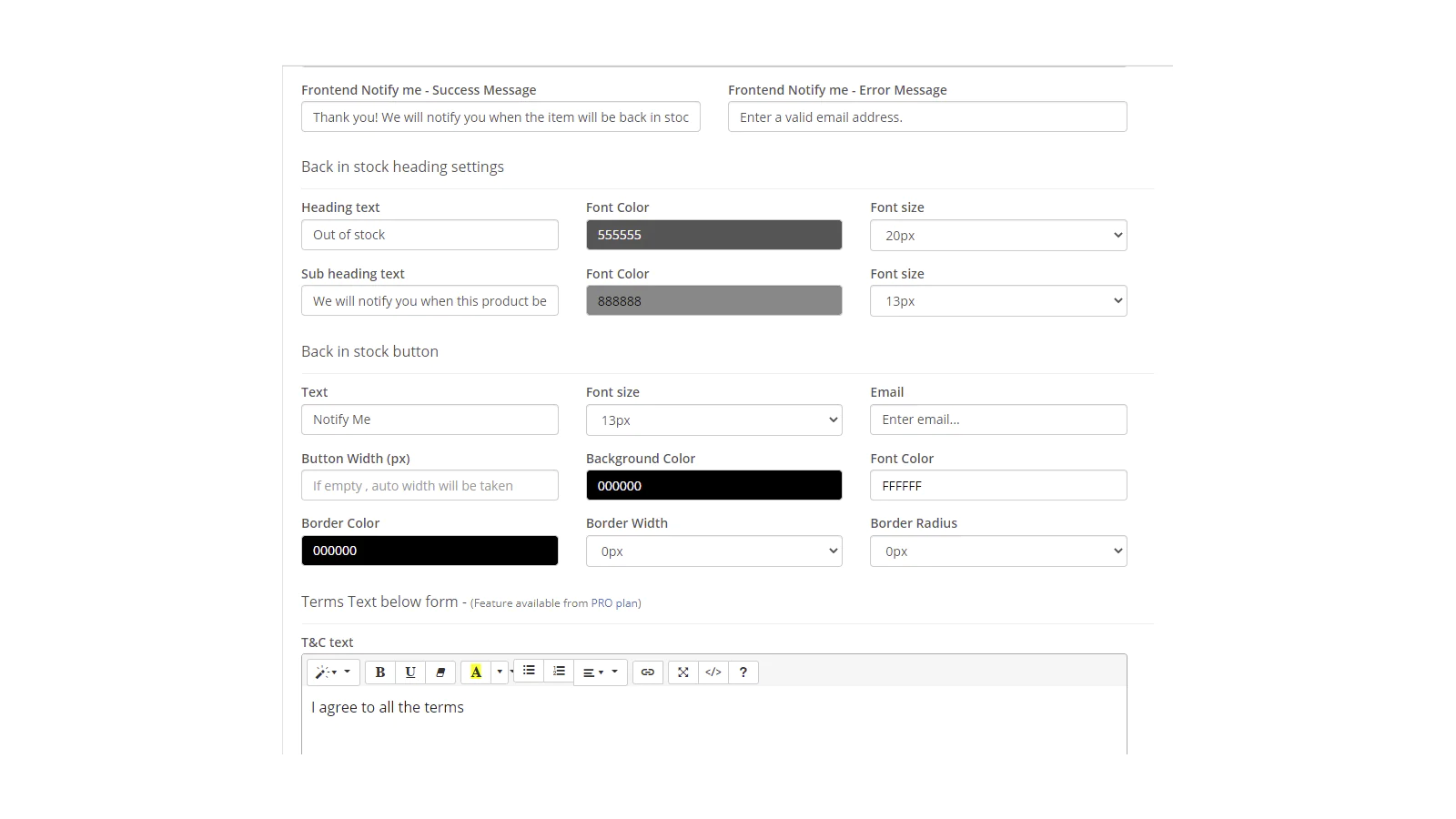 The back in stock feature allows your customers to sign up for an email alert. When products are back in stock, you can email customer from our app's back end about its availability. This way you can get your customers back and make sales.