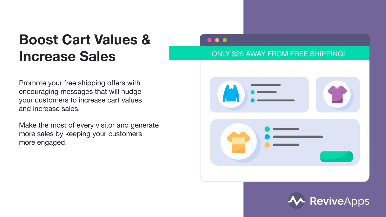 Instantly Boost Cart Totals : Start using intelligent banners, which boost cart totals and increase sales, getting your customers’ attention. Automatically!