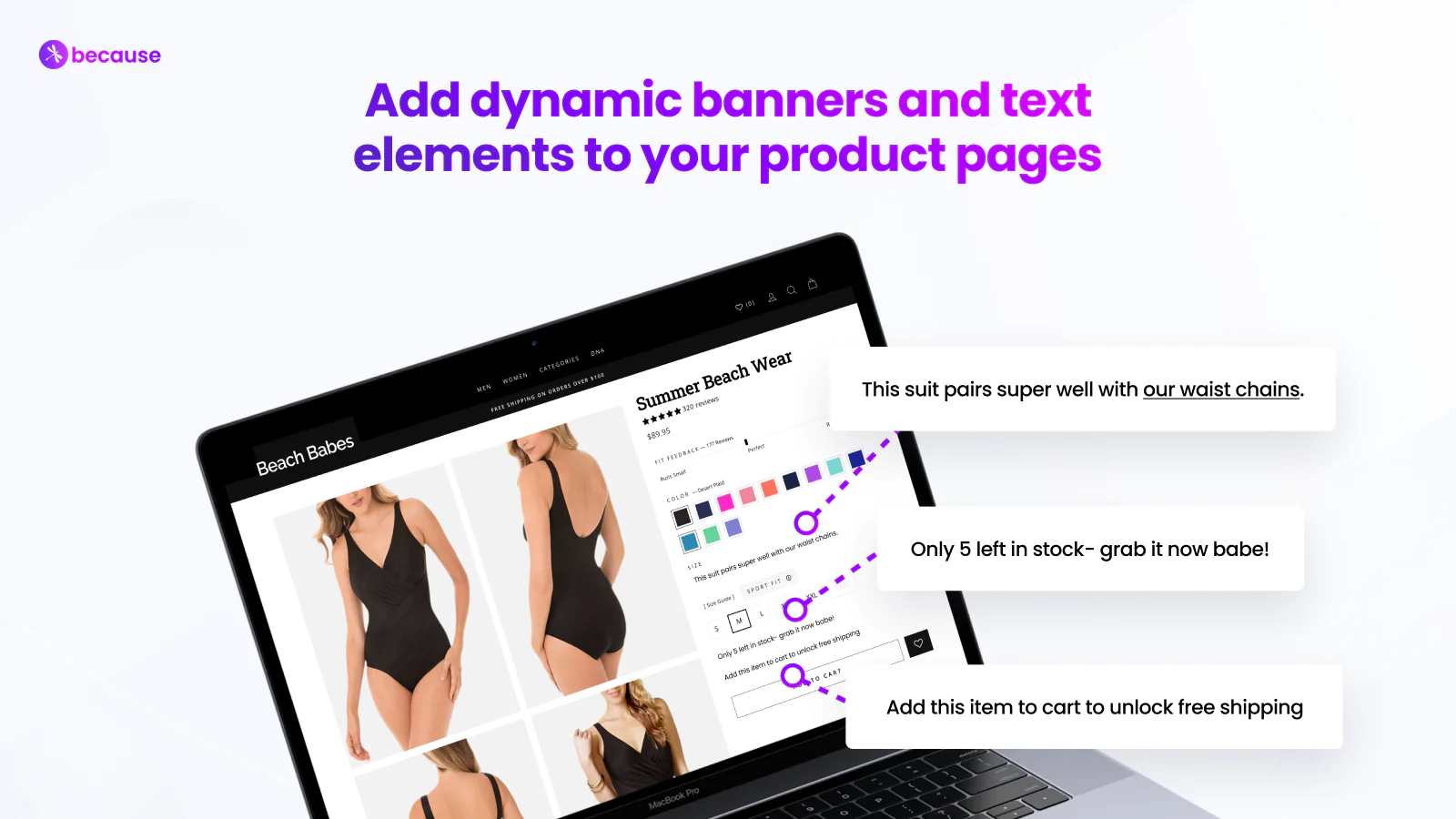 Because powers your product pages with dynamic banners and text elements. Show unique info on every product page and create amazing shopper journeys.