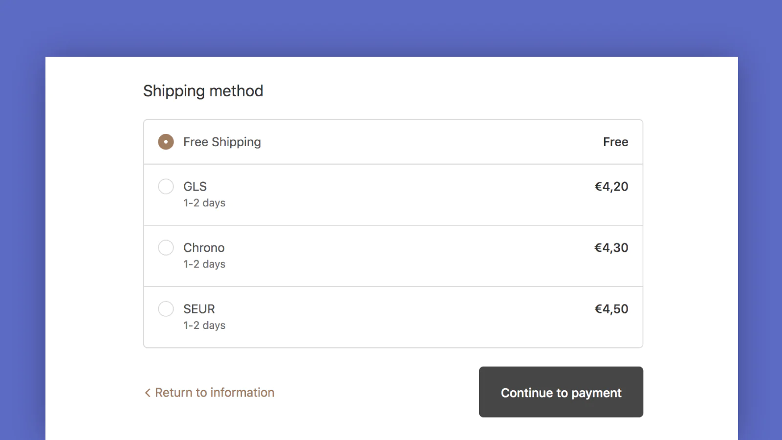 Automatic shipping costs : The cost of delivery is shown directly in the cart in your shop, calculated according to the delivery address and weight.