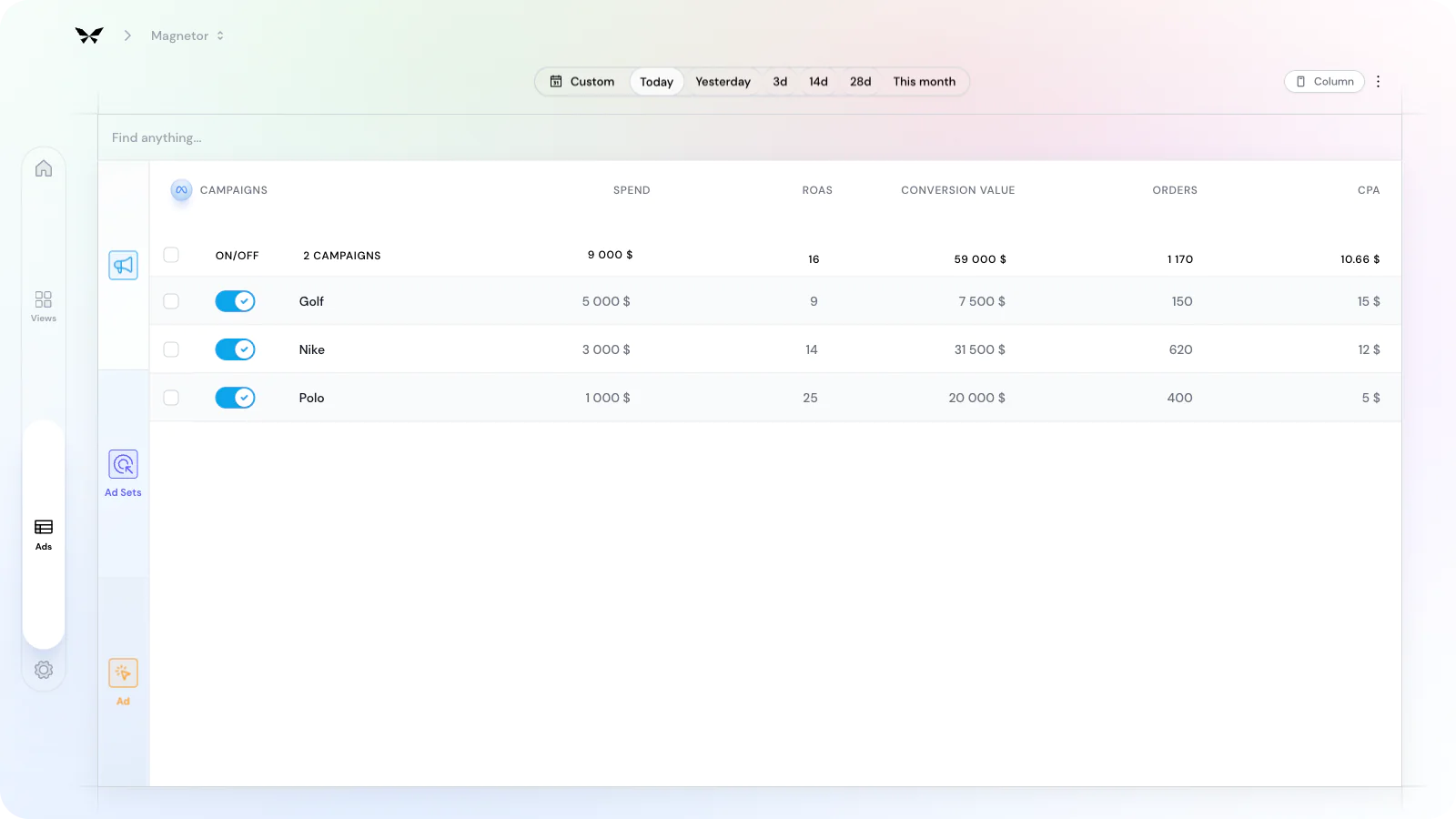 Since the latest updates on privacy by Facebook and Apple, it became impossible to get accurate data on your ads. That’s why we created Bily. Here is how it works: Connection to your Meta Ads account Add your Meta pixel Connection to your store Once the setup is completed, you will be able to see your accurate tracking inside Bily’s dashboard.