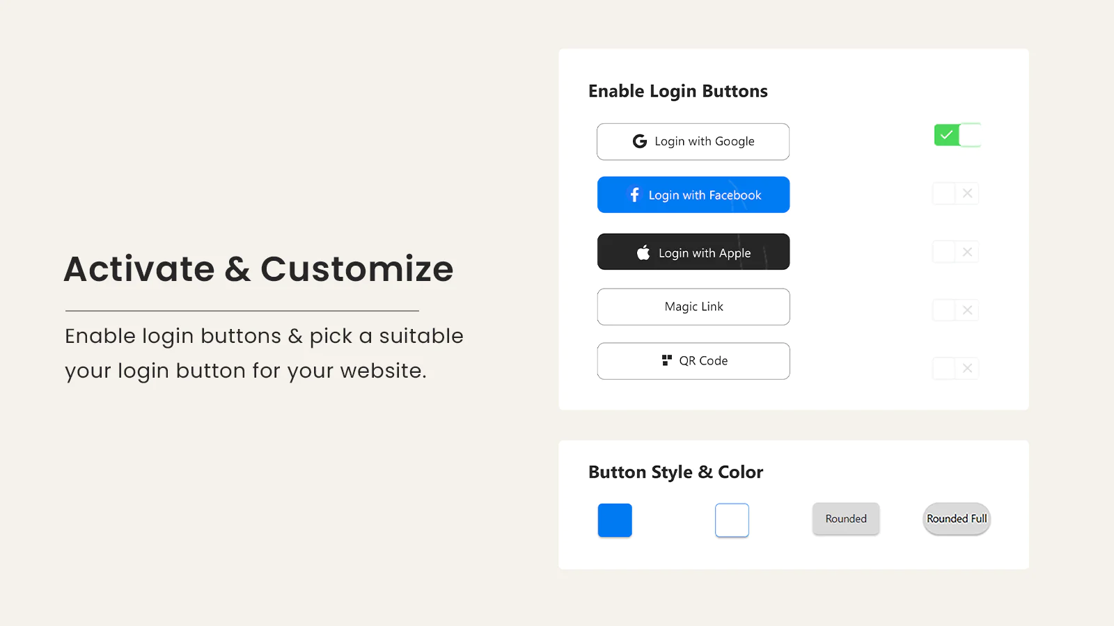 Customizable For Your Brand : Design your Modern sign-in button and make your brand stand out! Works both in Web, Android, and iOS application with bitApp