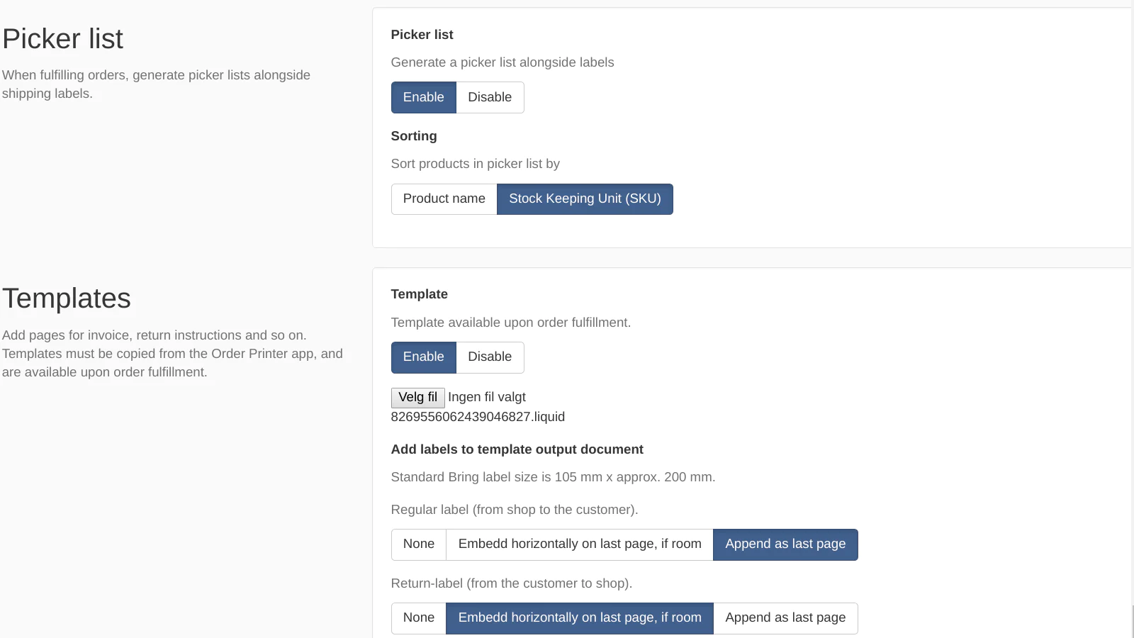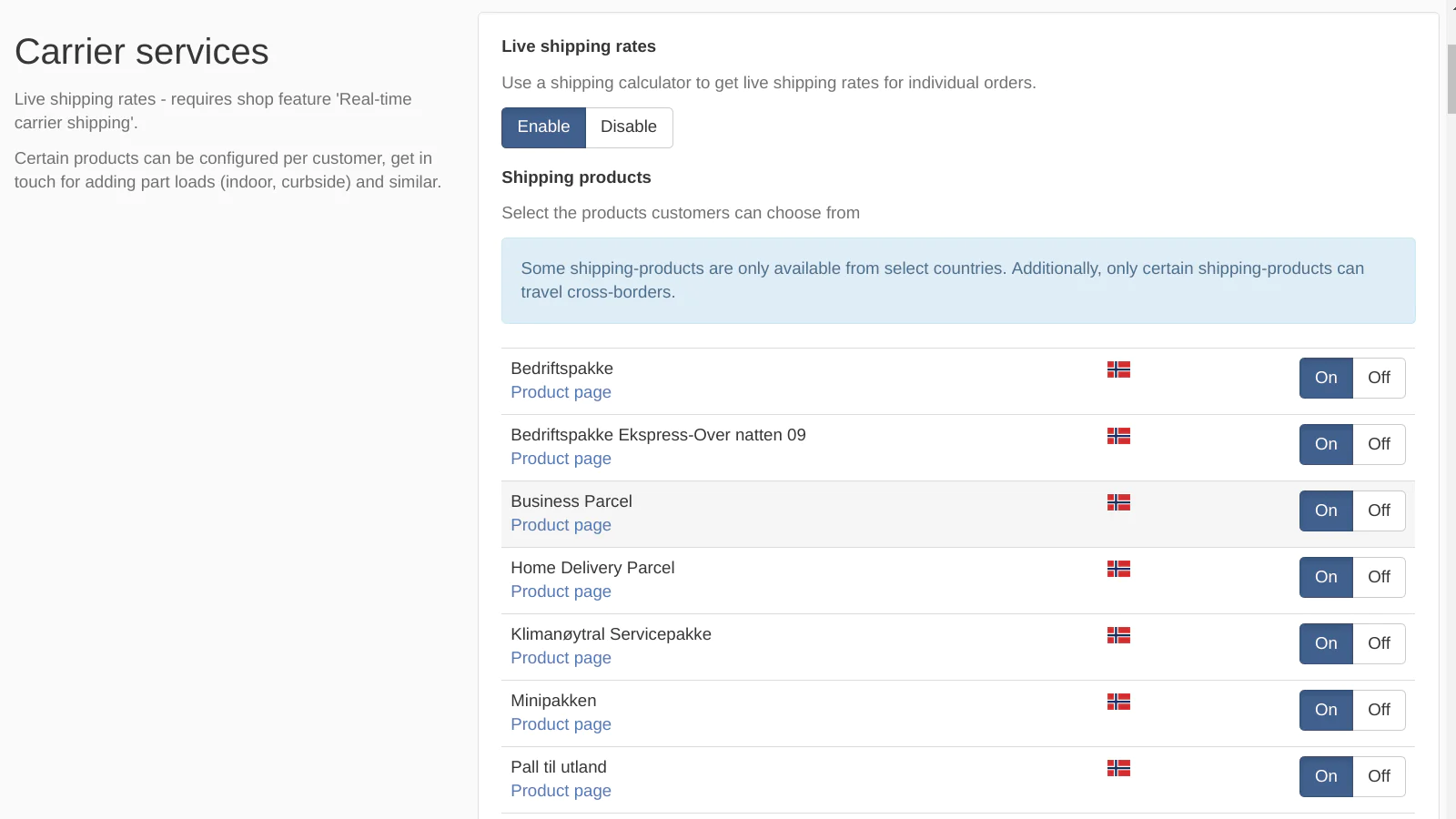 The apps enables you to offer real-time shipping rates and create real shipping labels via Bring's Mybring.