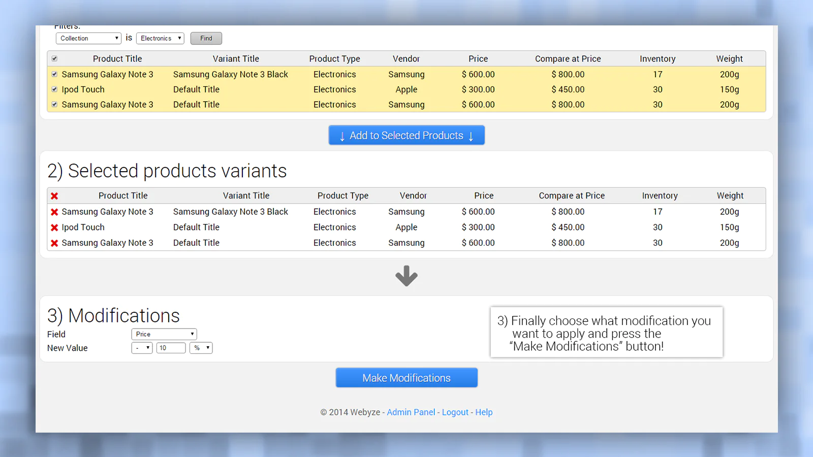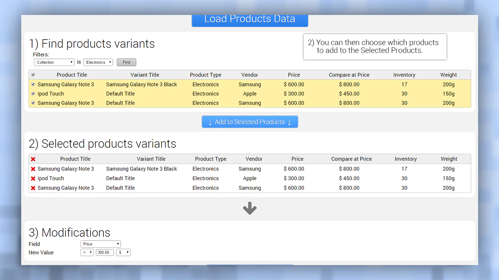 Advanced edits : Filter and make modifications on specific or broad products in few clicks.
