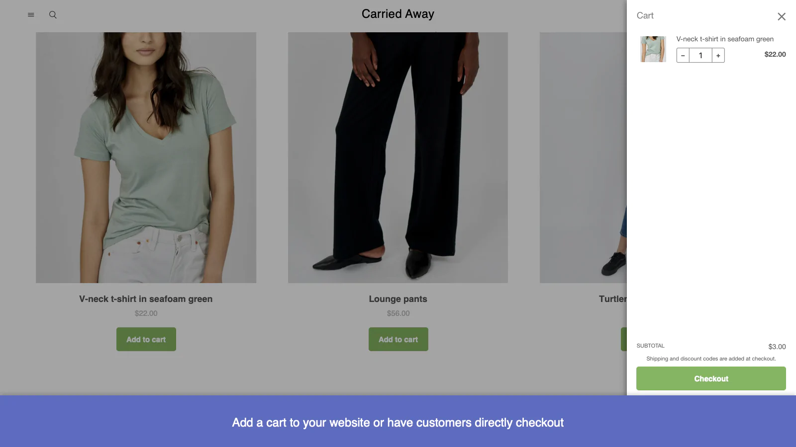 Create a Buy Button for any product or collection and add it to a website or blog. Use the Buy Button editor to match the style and colors of your brand, then copy and paste the HTML code to your platform of choice. You can also create quick checkout links that will send shoppers directly to your checkout page. Choose a single product and variant, then copy your link to any email, direct message or social media post.