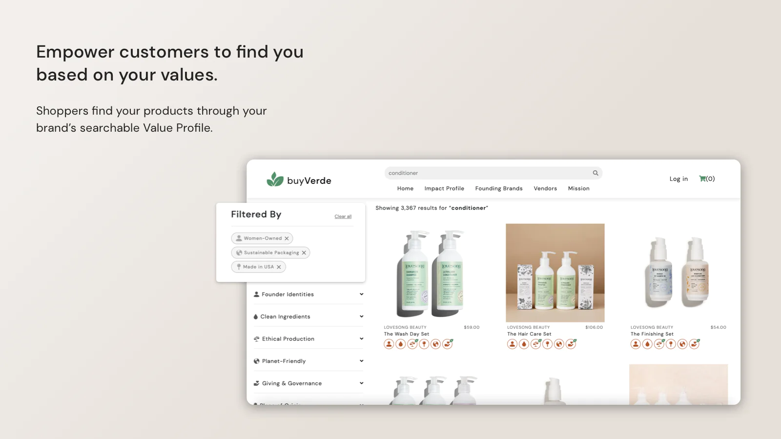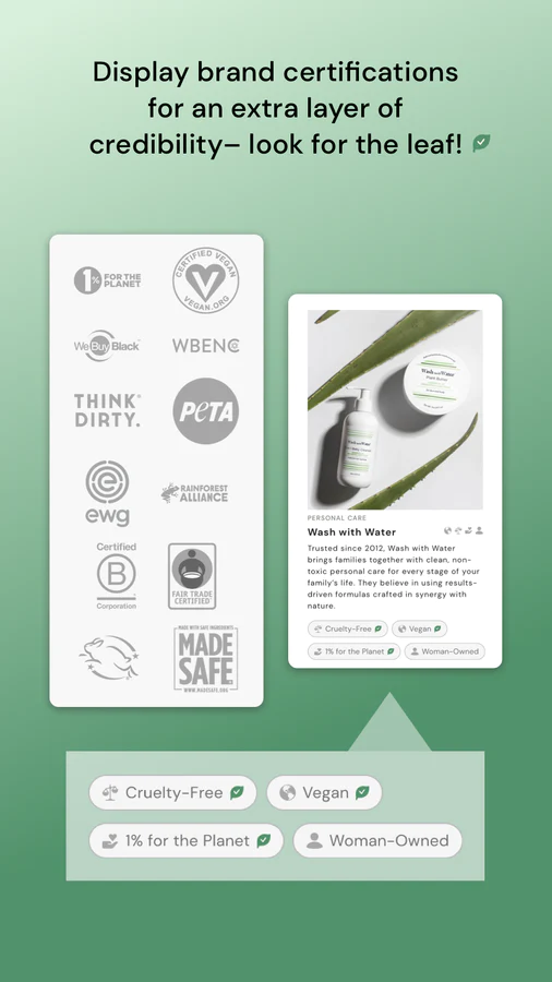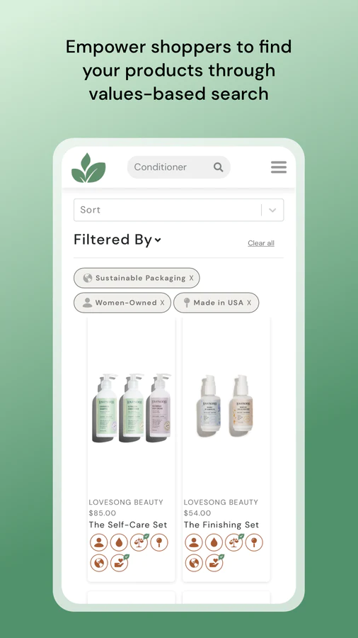 Get discovered for your values : Connecting to our platform means consumers can easily search and find your products based on your values.