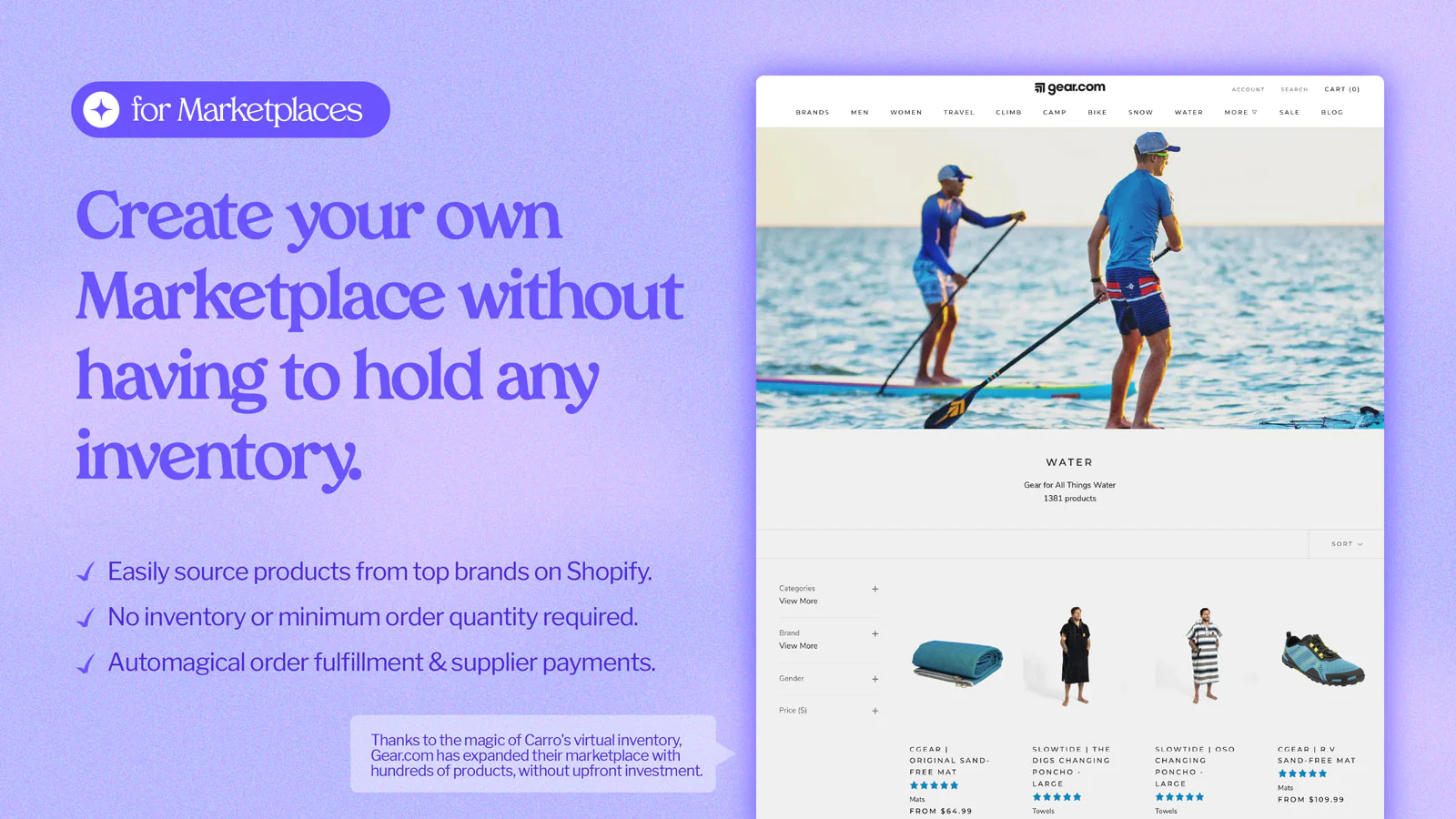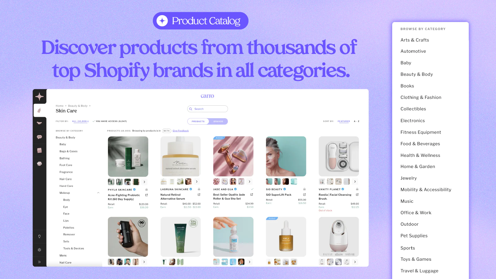 The Carro directory has a fast growing, curated list of real products, from real brands you know. In just a few clicks you could open the canal and have products that match your brand, delight your customers, and increase your average order value for sale today!