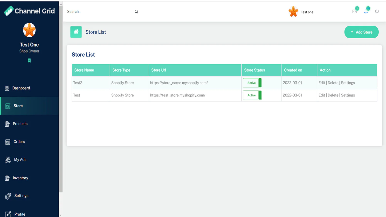 Store Management : Channel grid helps user to add their stores and help calculates the profit and loss across the stores.