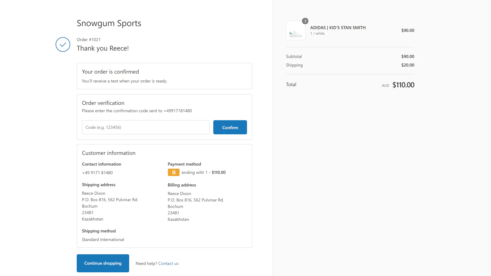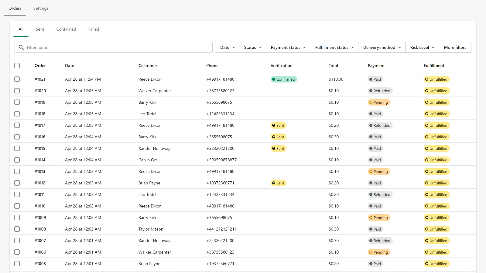 Fraudulent orders are an unfortunate reality of ecommerce that impact our bottom line. SMS verification is a cost effective and reliable way to gain peace of mind and reduce fraud. This app enables merchants to easily send SMS verifications for any order in over 200 countries, which customers can complete as part of the trusted Shopify checkout process.