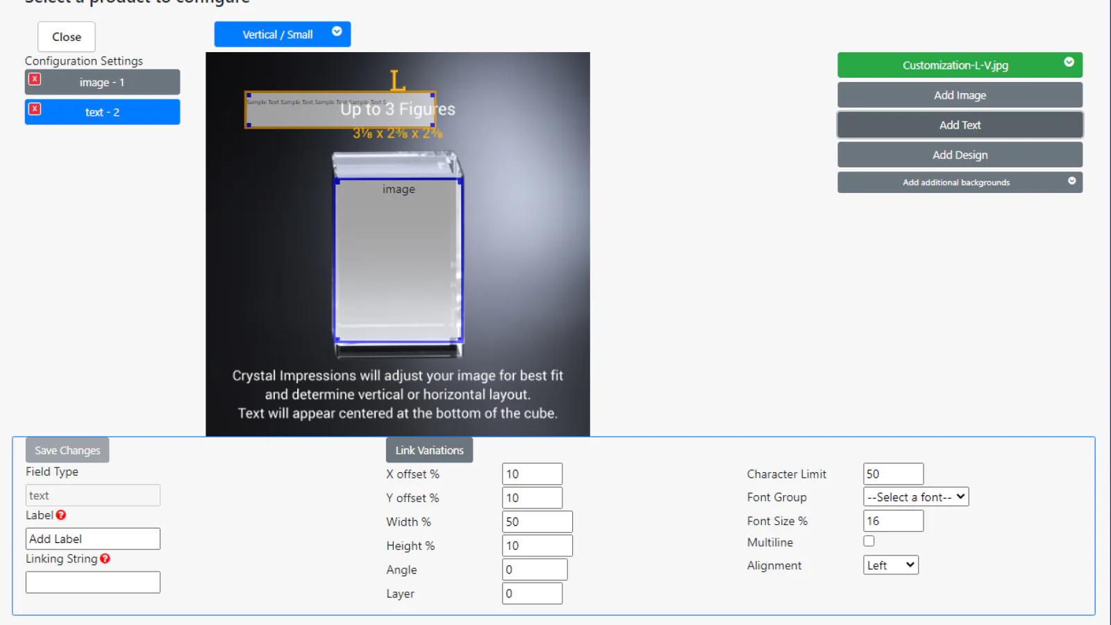 The Crystal Impressions Product Customizer is a one stop shop to allow your customers to design their own products by defining templates for each product on your store.