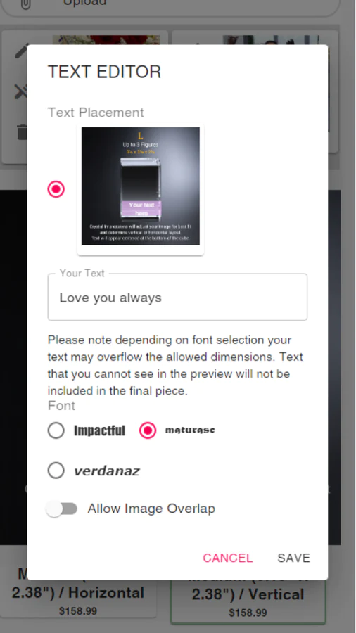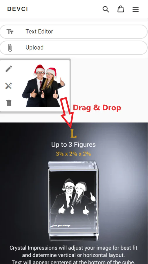 Other customization apps don’t allow for automatic background removal of customer photos. Crystal Impressions Product Customizer fills that gap.