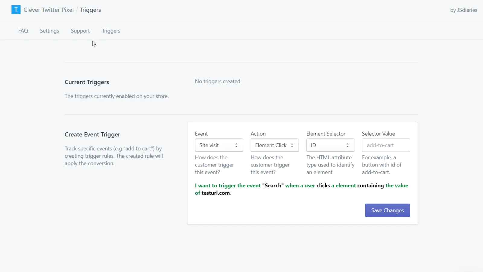 Simply specify a URL or website element that you want to track and Clever Twitter Pixel will ensure that any users that interact with your trigger rules cart are tracked correctly!