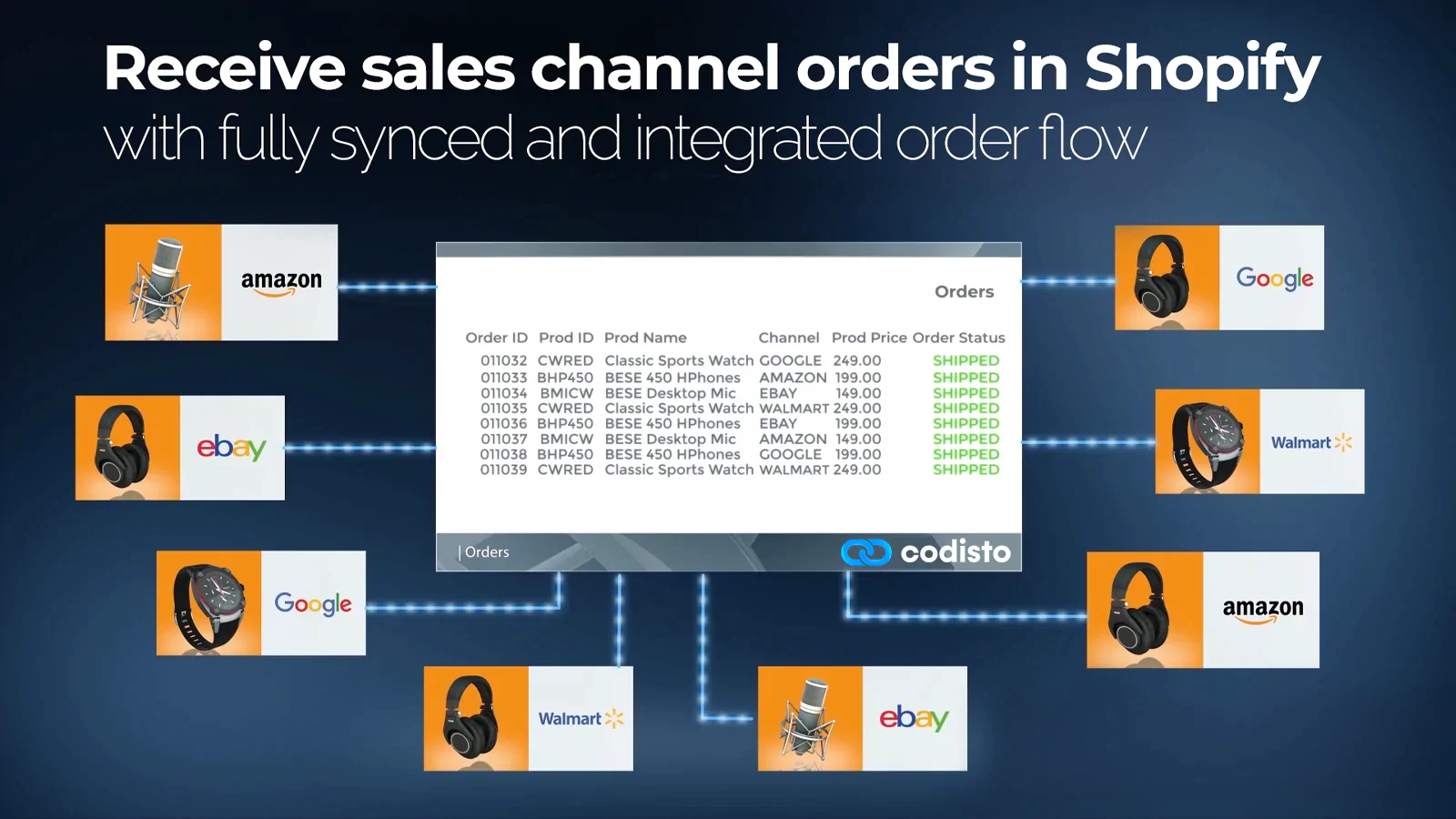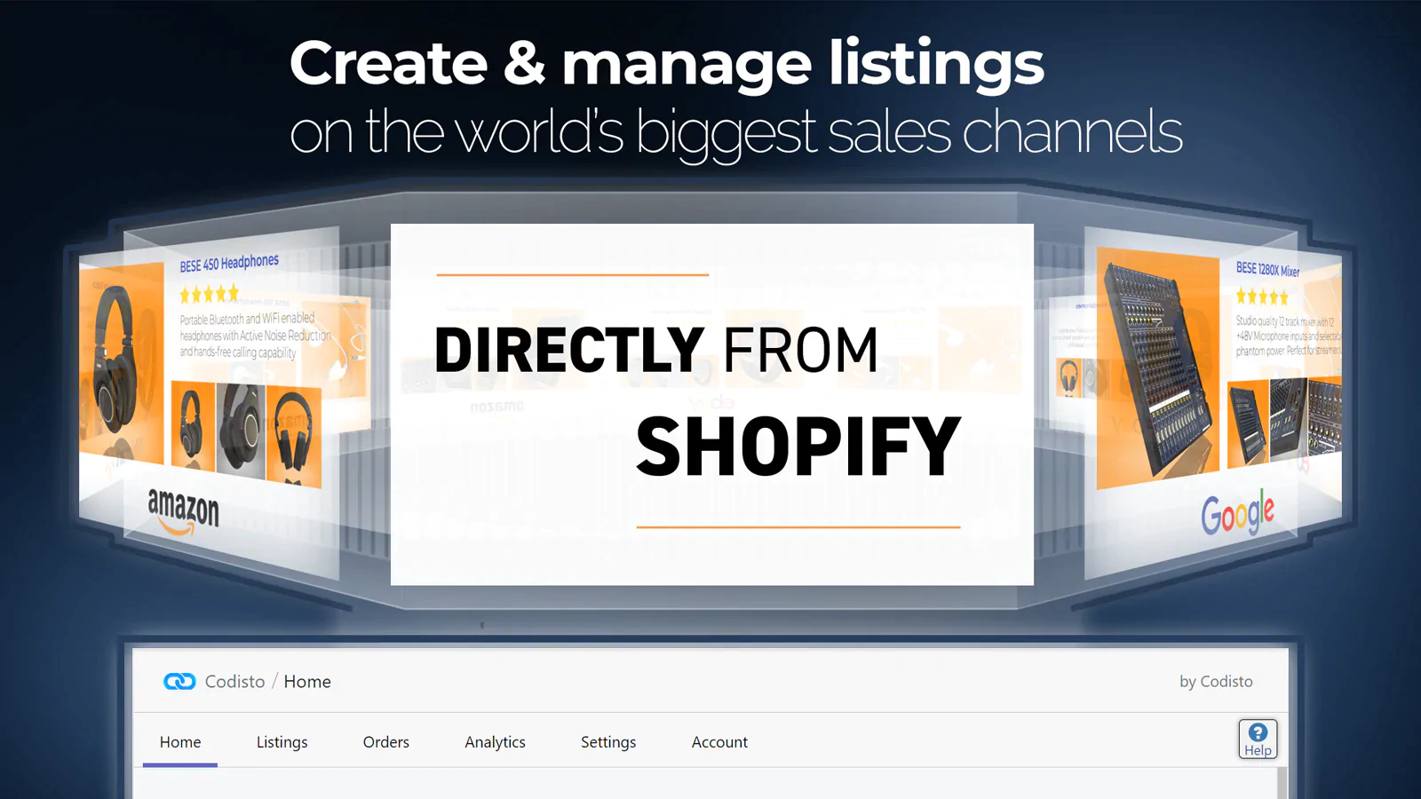 Codisto is a Google channel, an Amazon channel, an eBay channel and a Walmart channel all in one smartly designed app for Shopify.