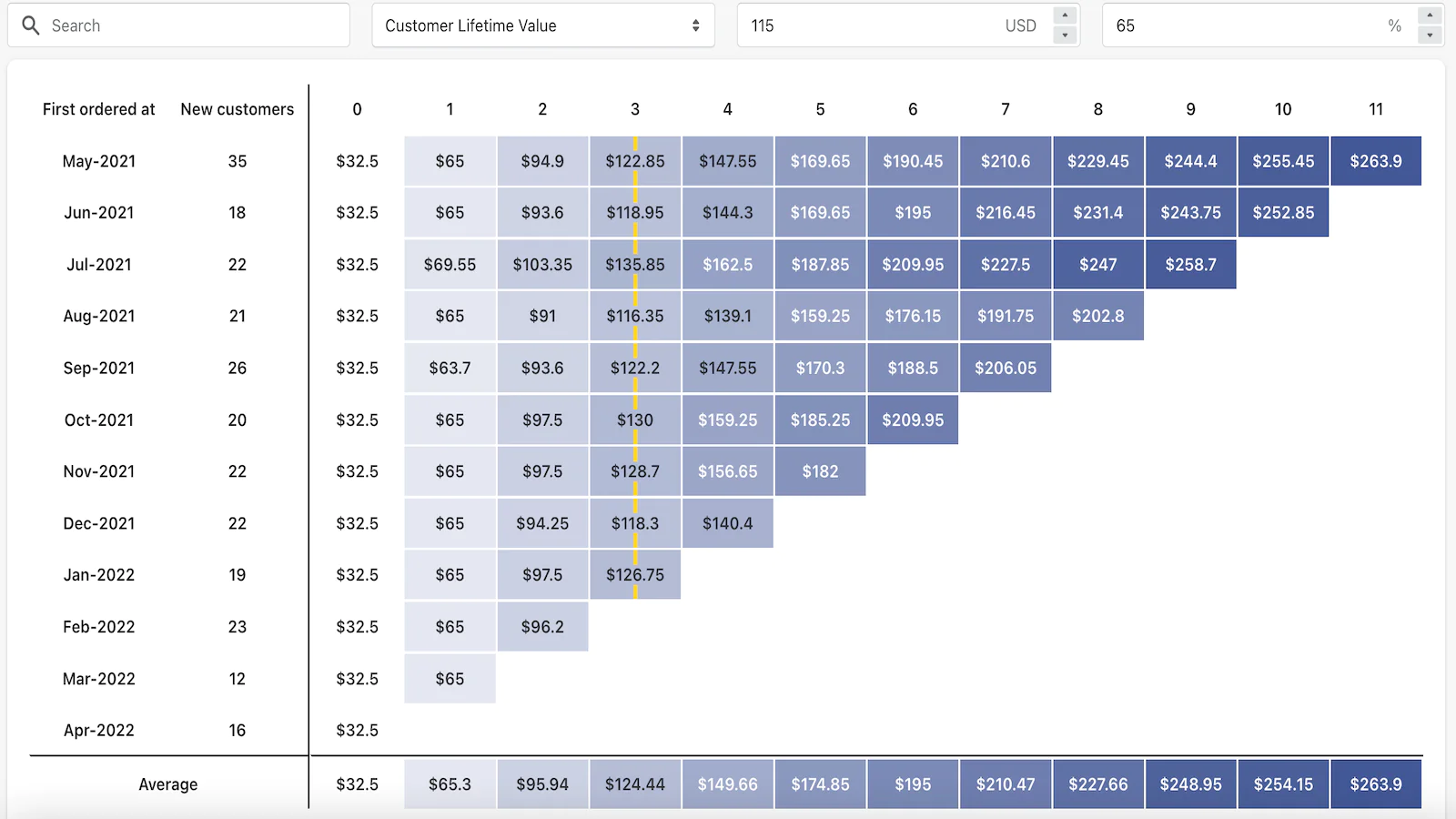 Cohort Wizard helps merchants to understand their customers and manage their business by analyzing customer lifetime value. All those complicated customer lifetime reports will be ready at your dashboard. Just select the report type!