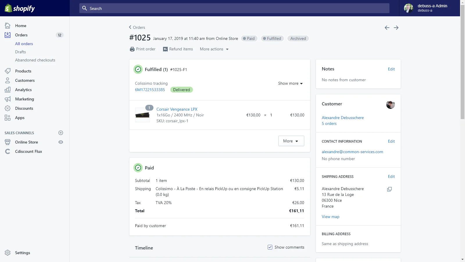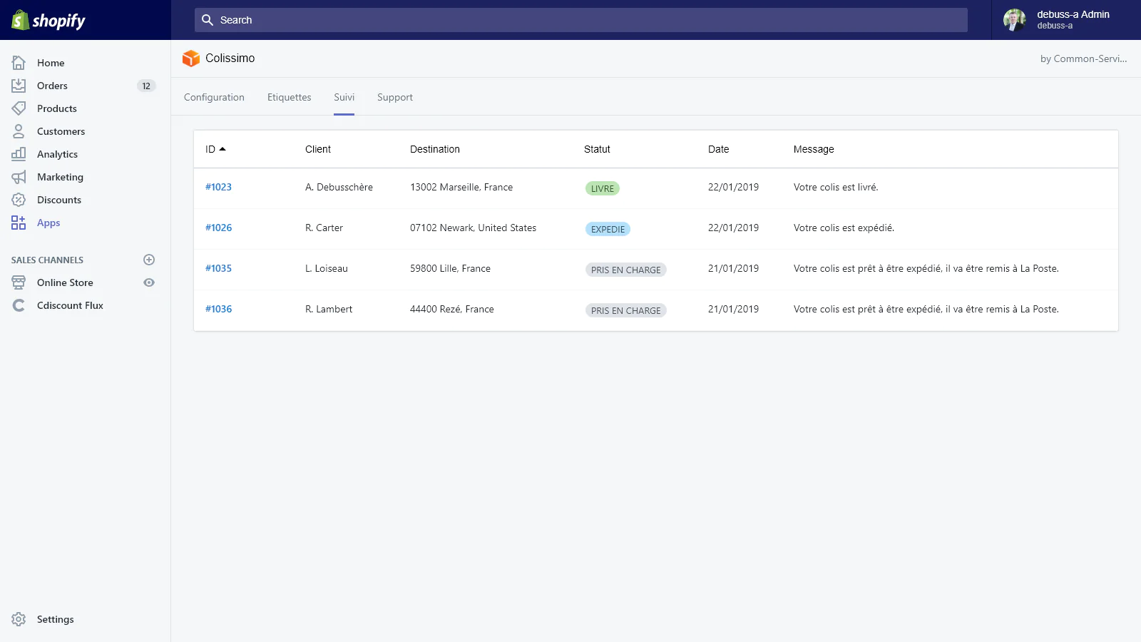 Tracking : Professional tracking with automatic update of your fulfillment according to Colissimo delivery status.