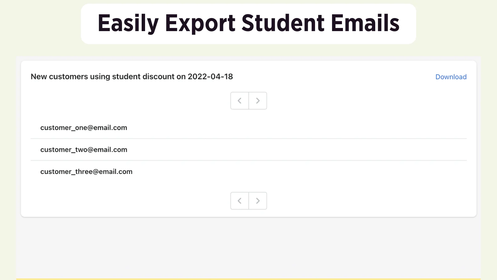Once users sign up, you will have access to a daily list of all users that have signed up with a .edu email. Export everything or simply copy each individual email if you'd like.