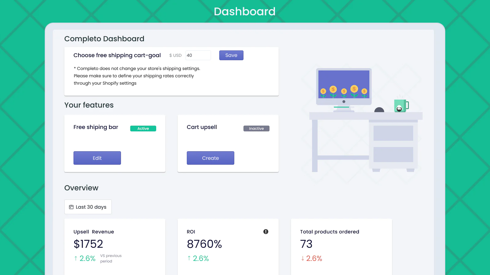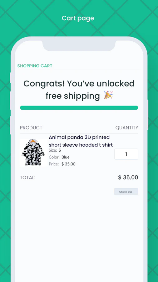 An In-cart progress bar Upsell gives each customer a sense of success by reaching a Free shipping threshold milestone to unlock free shipping while encouraging a bigger smooth sale.