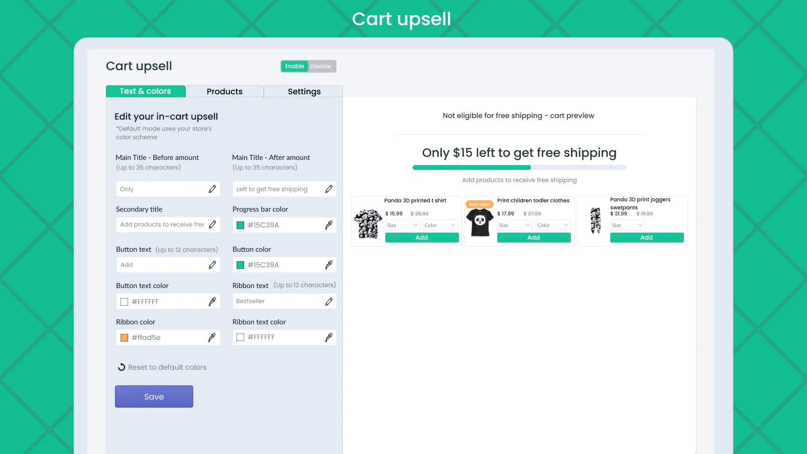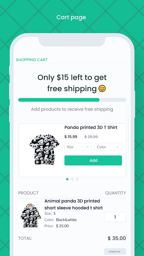 Native upsell progress bar : Automatic yet adjustable to match the free shipping bar to your store design on mobile & desktop. Advanced cart goal based in cart upsell