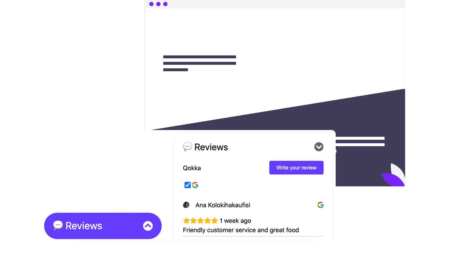 Review Consolidation : Show best reviews; Collect new reviews on-site; Aggregate Reviews from Big Platforms (Google, Facebook, Yelp, Amazon...);