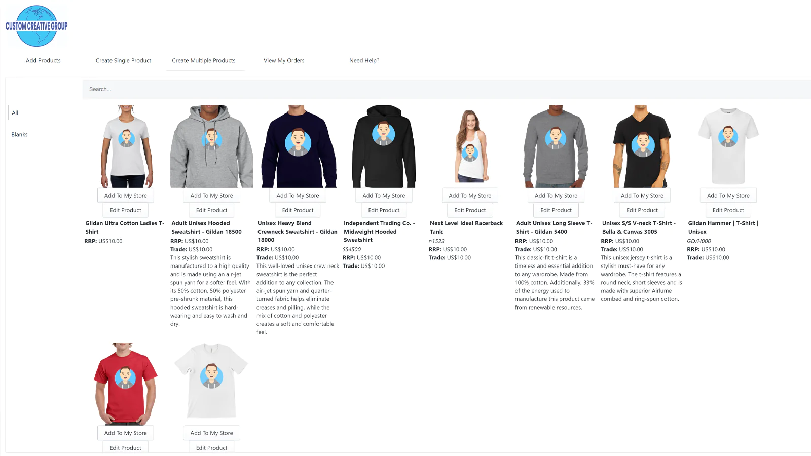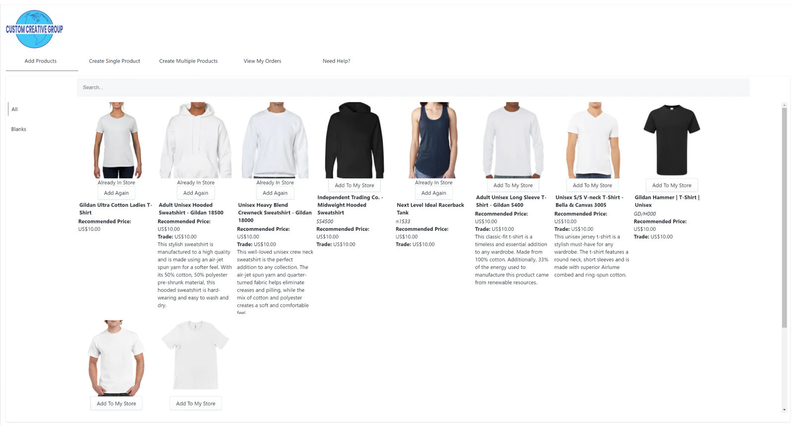 - The App allows the Merchant to choose from a wide array of blank products from our vast catalog. This, in turn, allows the merchant to offer a wider array of product than they traditionally would.