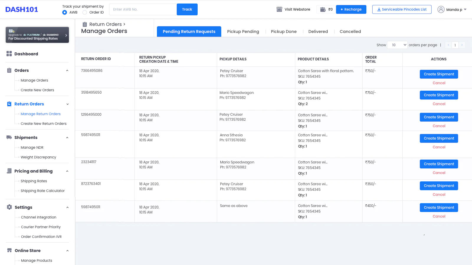 Effective, reliable and fast reverse logistics. Place return orders in just a few clicks at rates lesser than forward shipping.