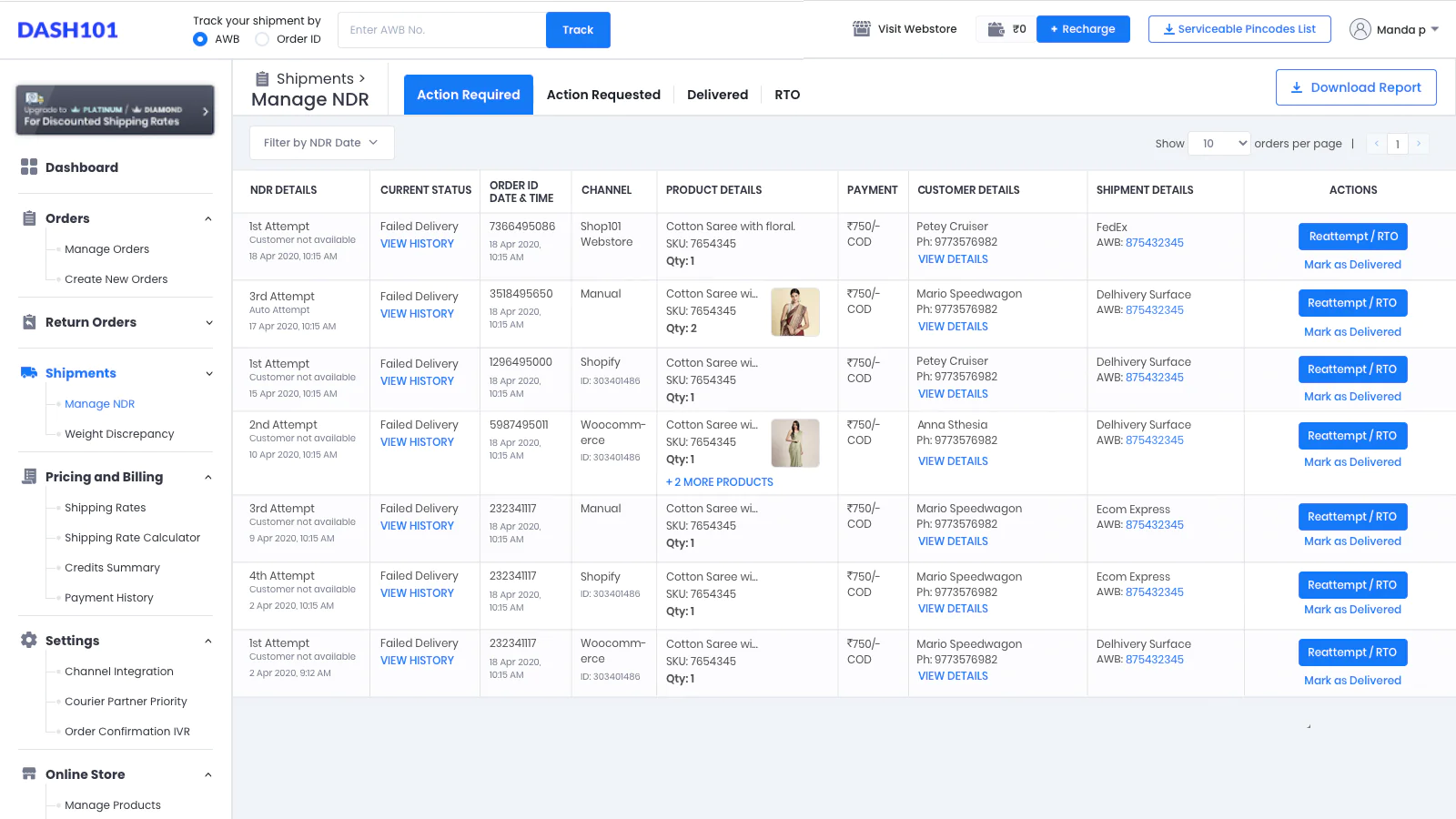 Deliver PAN India with 8+ recognized courier partners and provide cash on delivery (COD) and pre-paid payment facility to your customers.