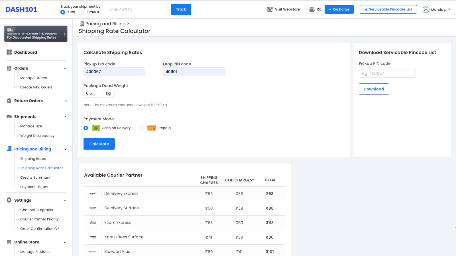 Low Shipping Rates & Low RTOs : Optimize shipping with Dash101 Logistics. Ship for rates as low as ₹23/500gms and reduce RTOs with AI powered prediction model.