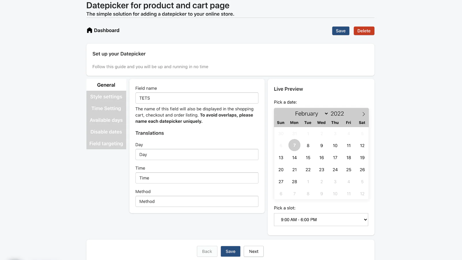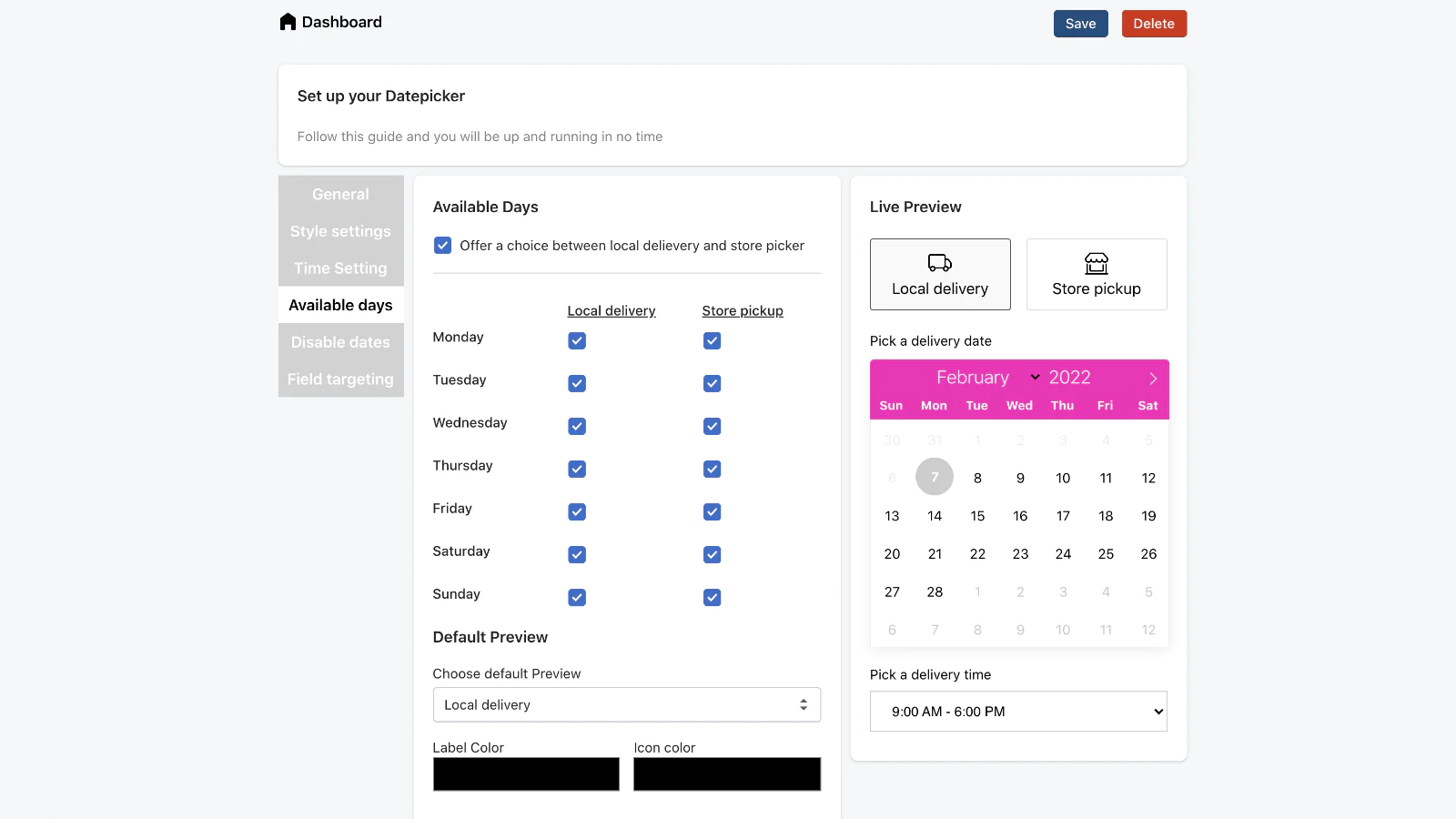 Easily define available days, times and delivery options and offer your customers a unique user experience with our Date picker.