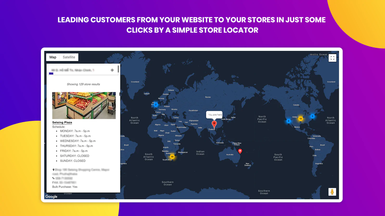 - Display Directions: Your customers are able to see the directions from their places to your stores.