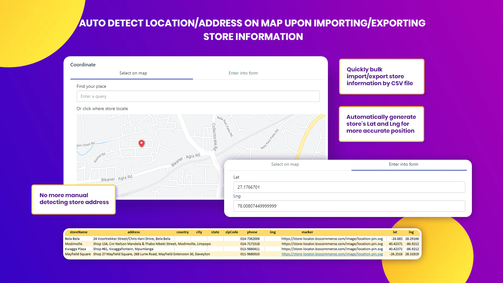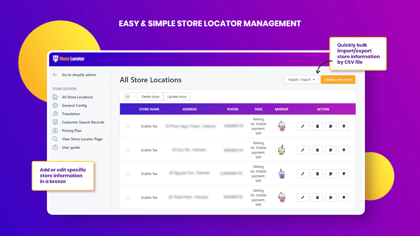 - Bulk Import Unlimited Stores: Easily add as many stores as you want by just uploading your CSV file within minutes.