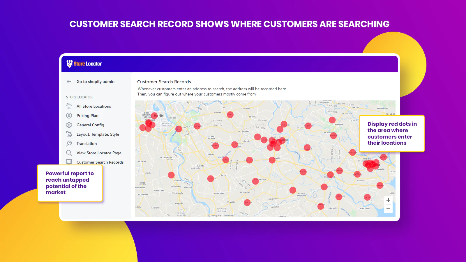 - Customer Search Records: Our app allows checking the search history of all customers so that you can get their location data. Then, you can improve the stores which are the most commonly shown.