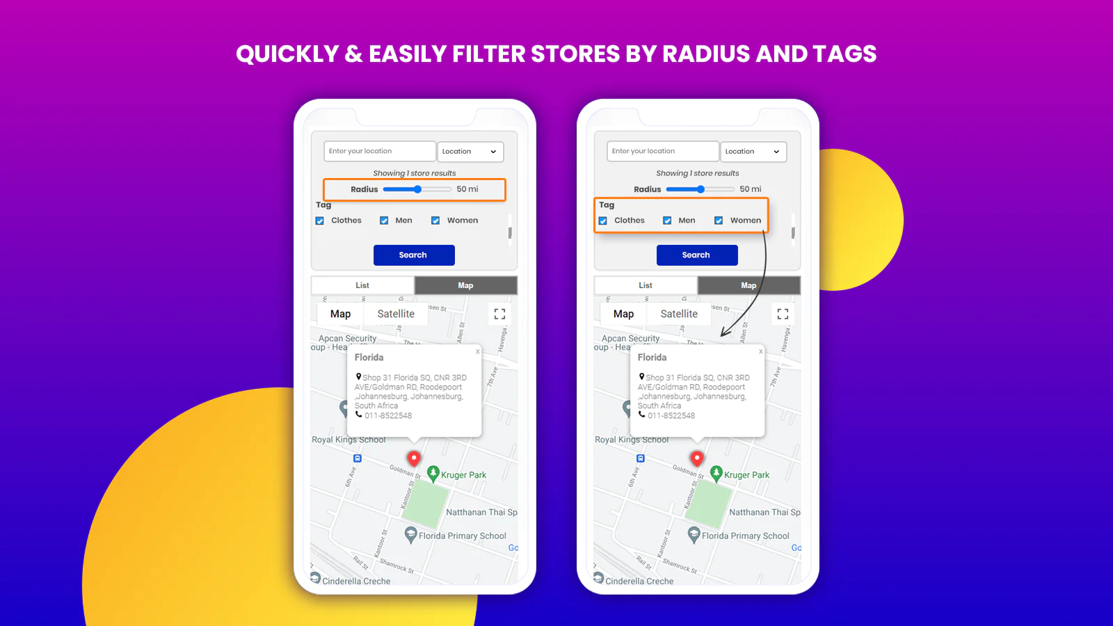 - Filter Stores by Tags: Store locations with tag filtering will allow your customers to narrow down their search by assigning tags to stores.