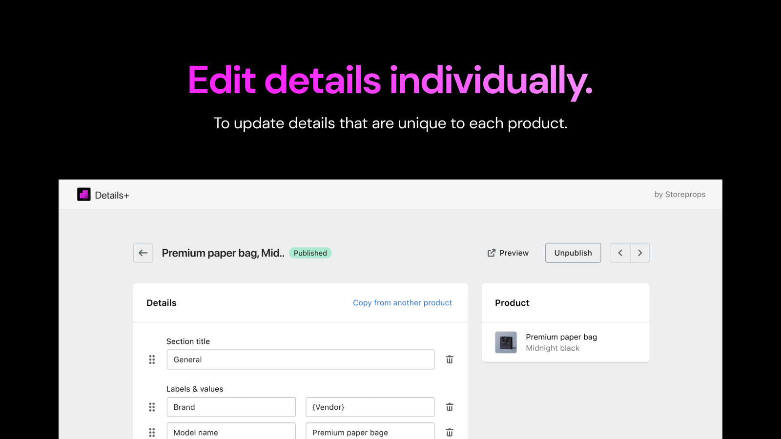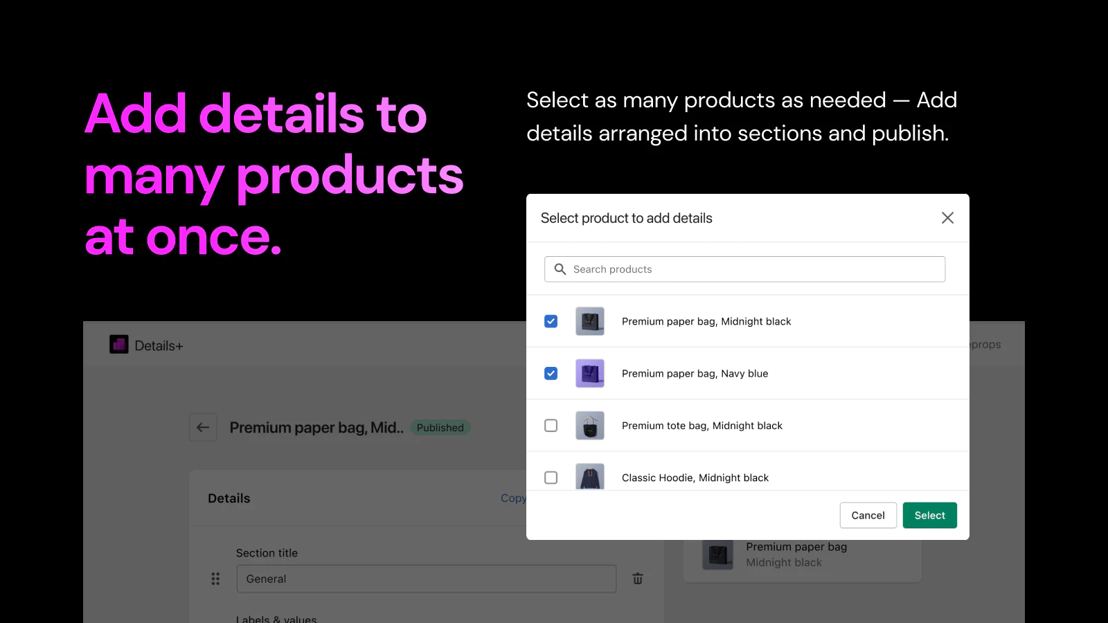Bulk add product descriptions : Customers love products with proper descriptions. Details+ is the easy and smartest way to add descriptions to all products in your store.