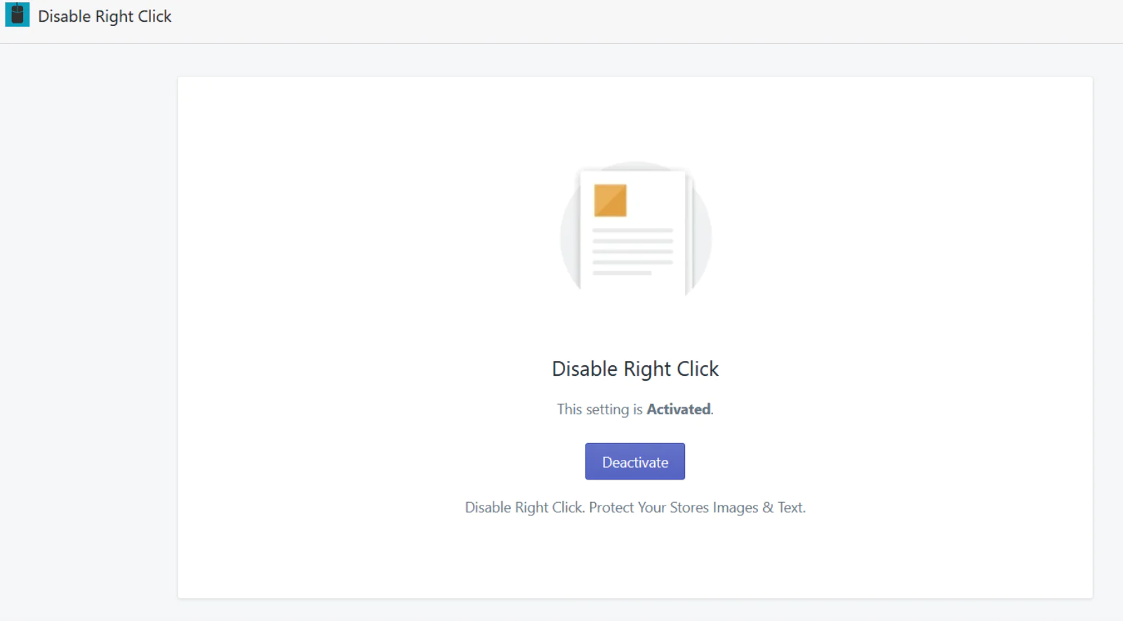 Easy To Activate & Deactivate : Easy To Activate & Deactivate Disable Right Click. Protect Your Stores' Images & Text.